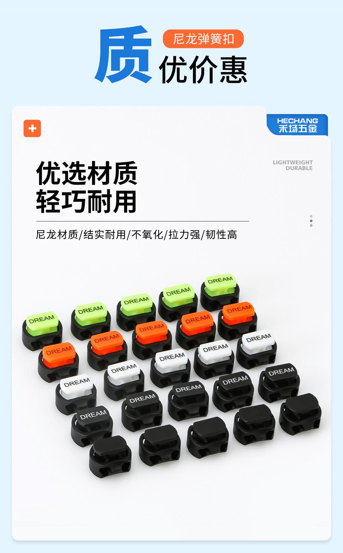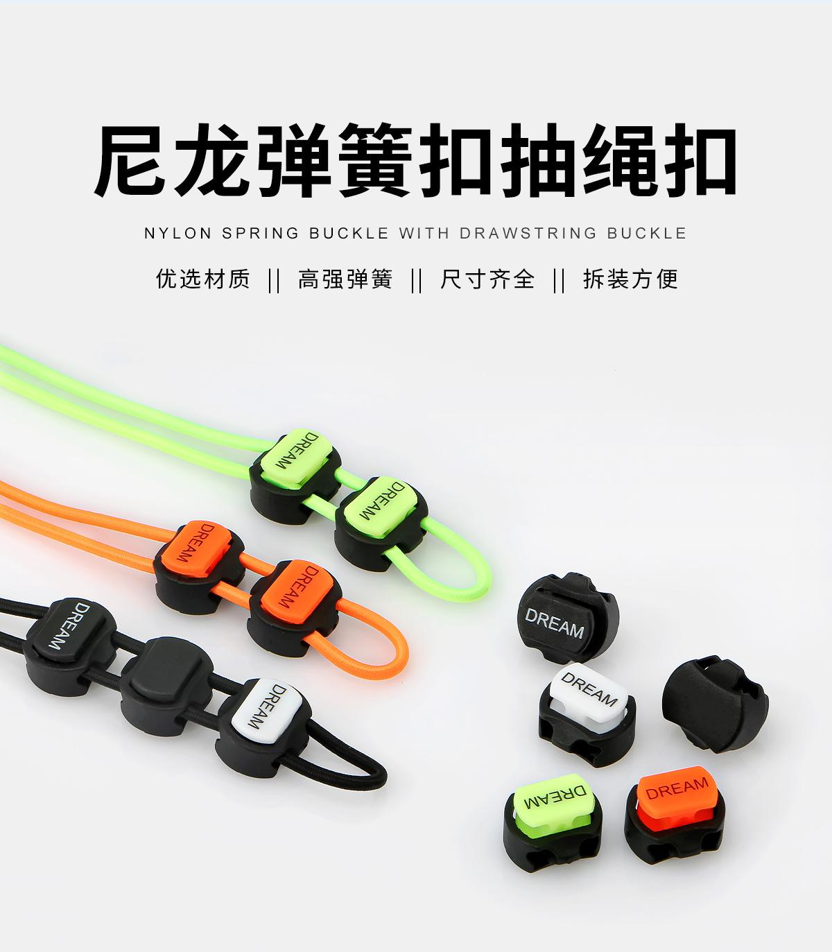 Botón de alta calidad, hebilla de cordón de plástico, hebilla de resorte, hebilla de ajuste elástico, hebilla de cuerda fija, hebilla de nariz de cerdo