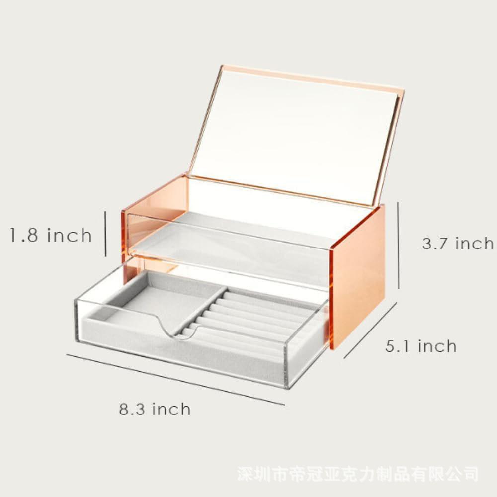 Caja de almacenamiento de joyas de acrílico transparente con espejo, bandeja de almacenamiento de clasificación multifuncional, caja de acabado con abrazadera para joyas