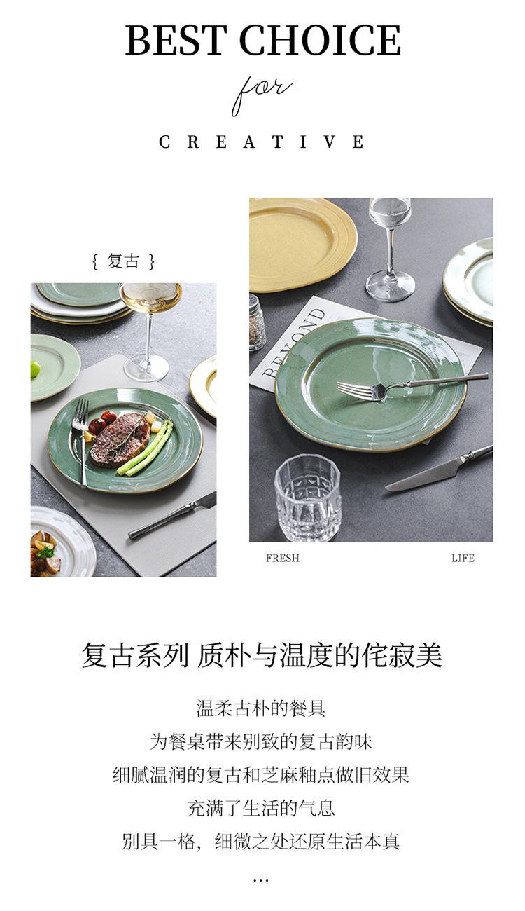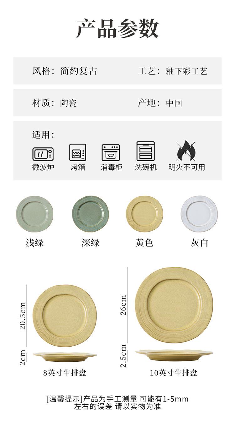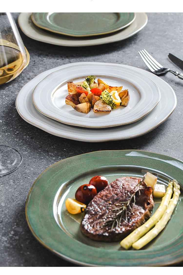 Plato de cerámica doméstica de alta calidad vintage horno plato hondo japonés plato celebridad de Internet plato para bistec occidental vajilla de cerámica