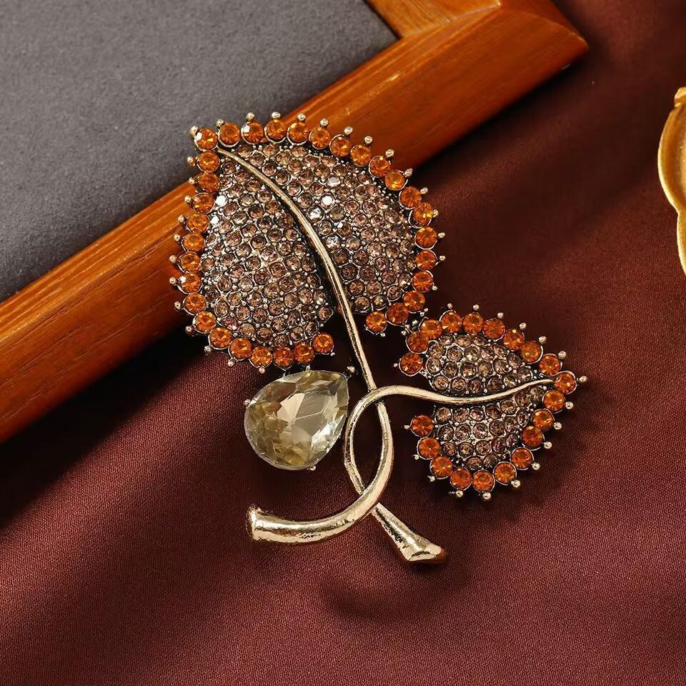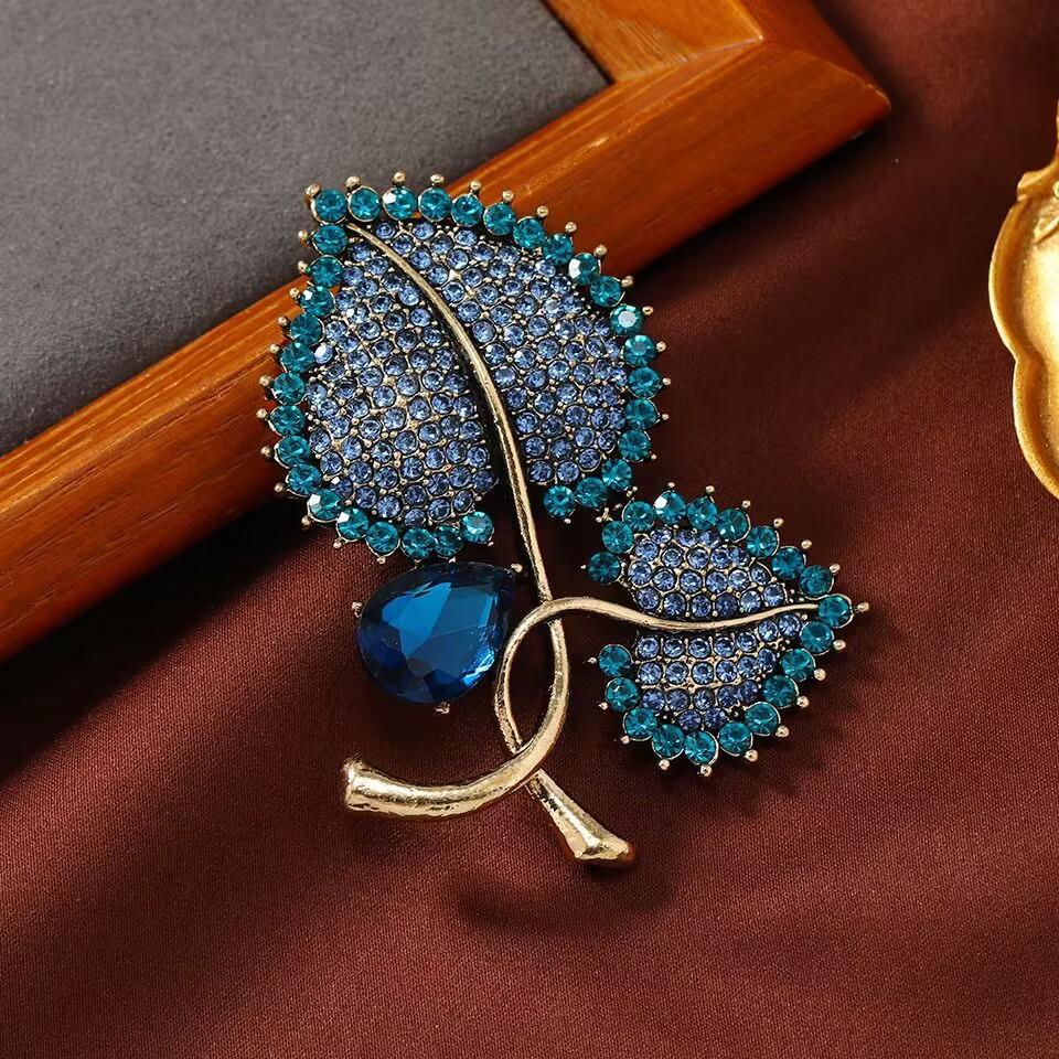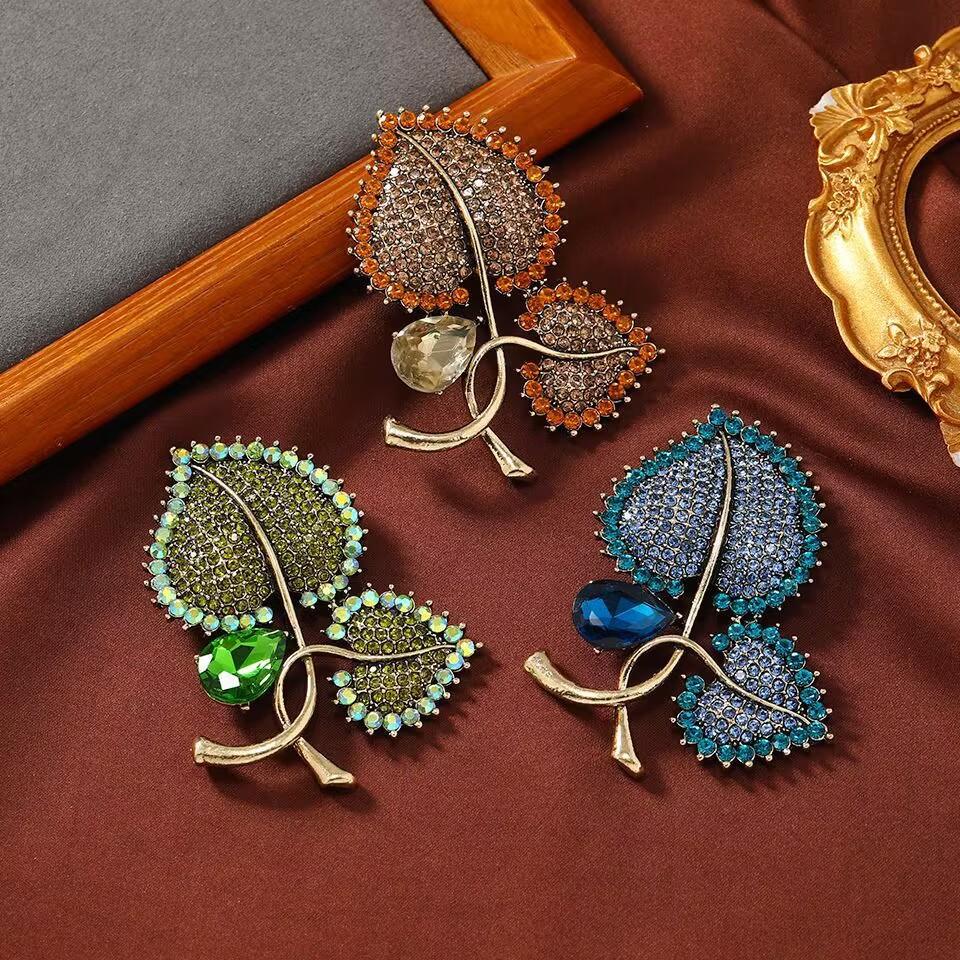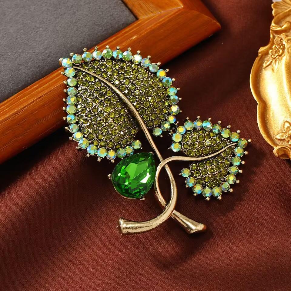 Compra Nuevo Broche de Hoja Vintage con Pedrería para Abrigo de Mujer Pin para Abrigo Accesorios Diseño de Sentido de Alta Gama Ramillete al por mayor en Joom.pro