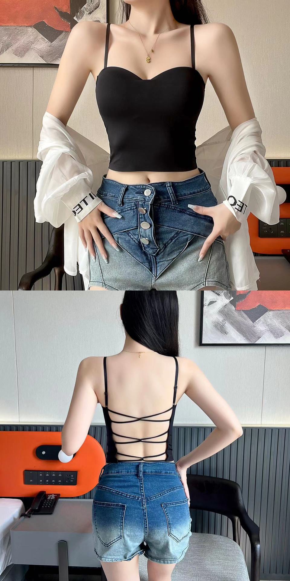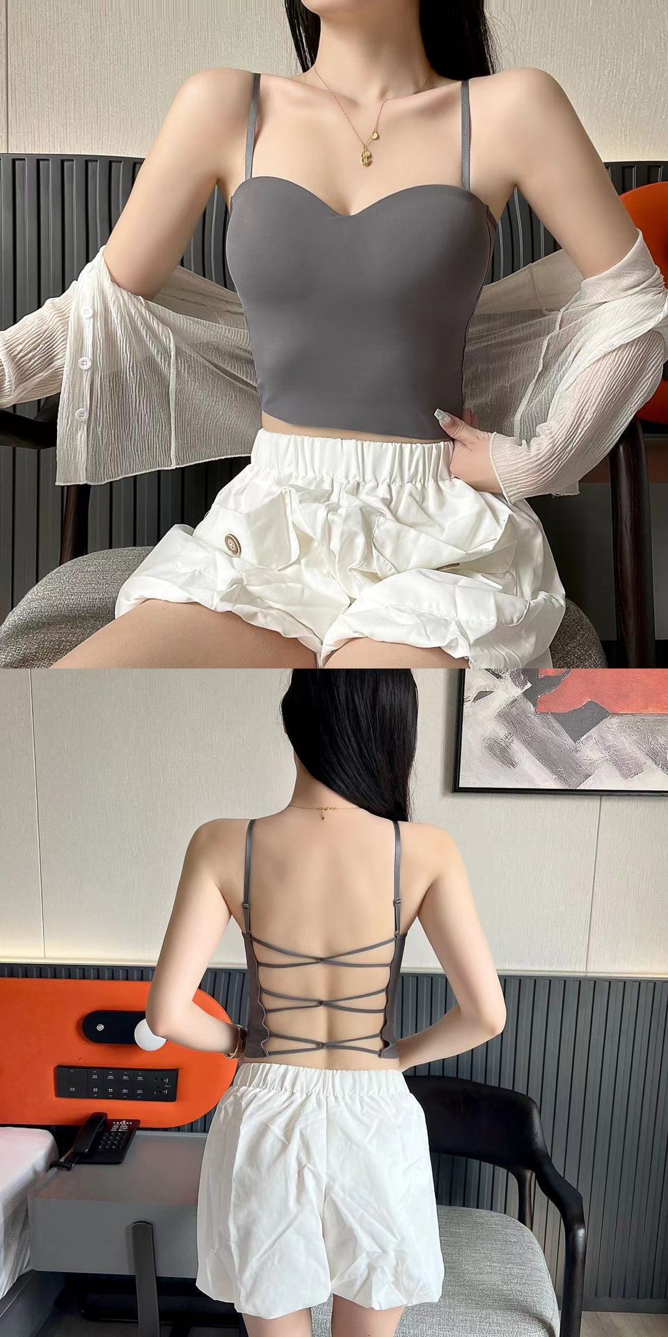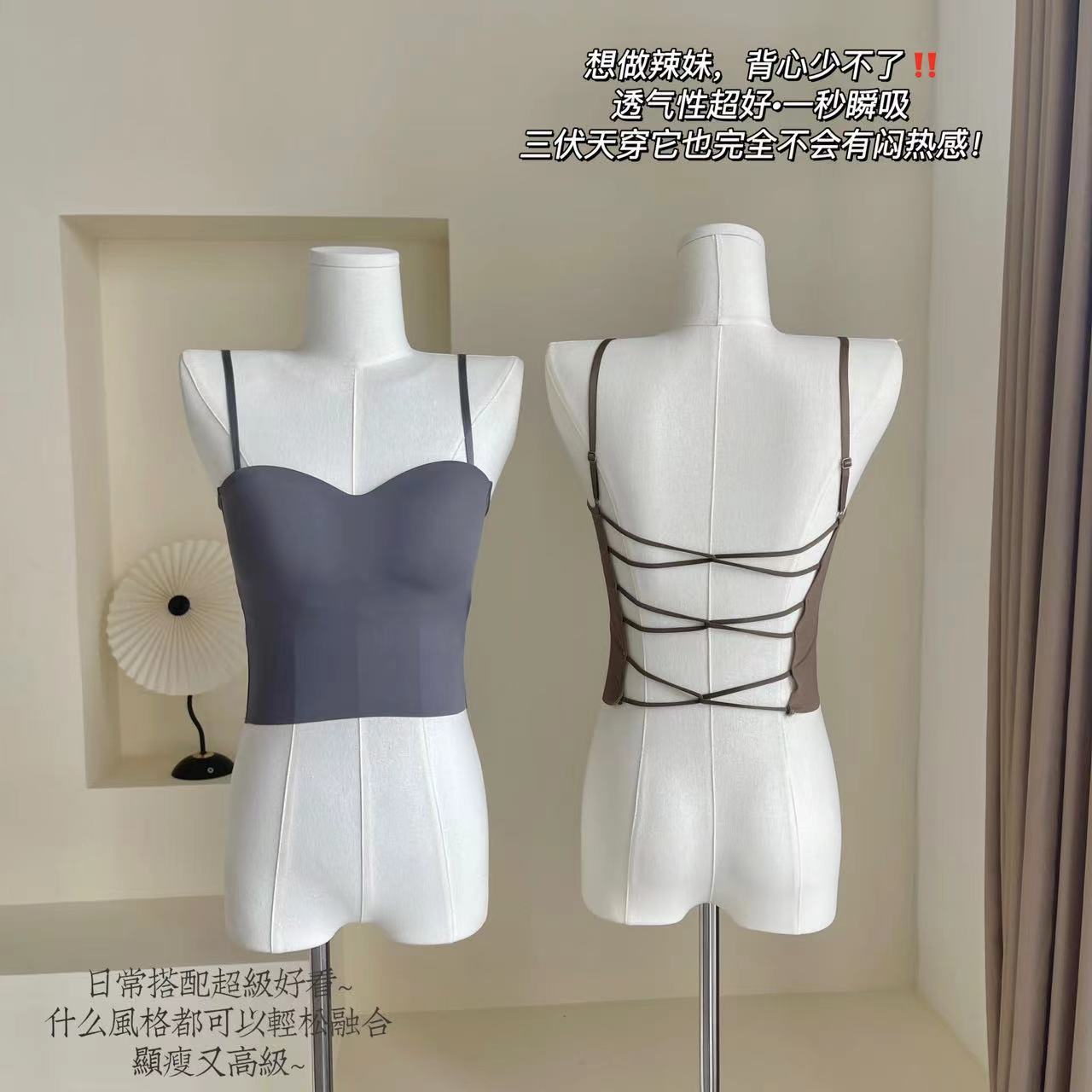 Seda de Hielo Hermoso Espalda Top de Tubo Tirantes Chaleco Sin Marcas Copa de Una Pieza Espalda Hueca Hermosa Uso Interior Ropa Interior Sexy de Spice Girls