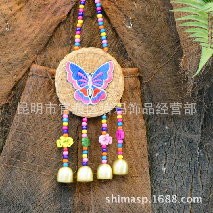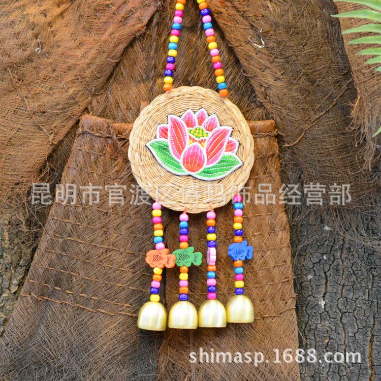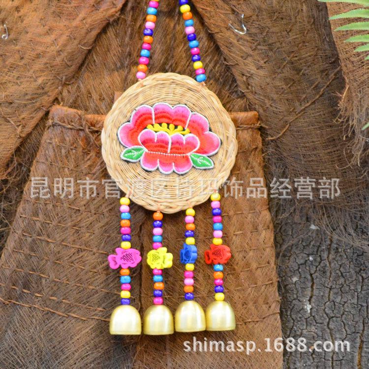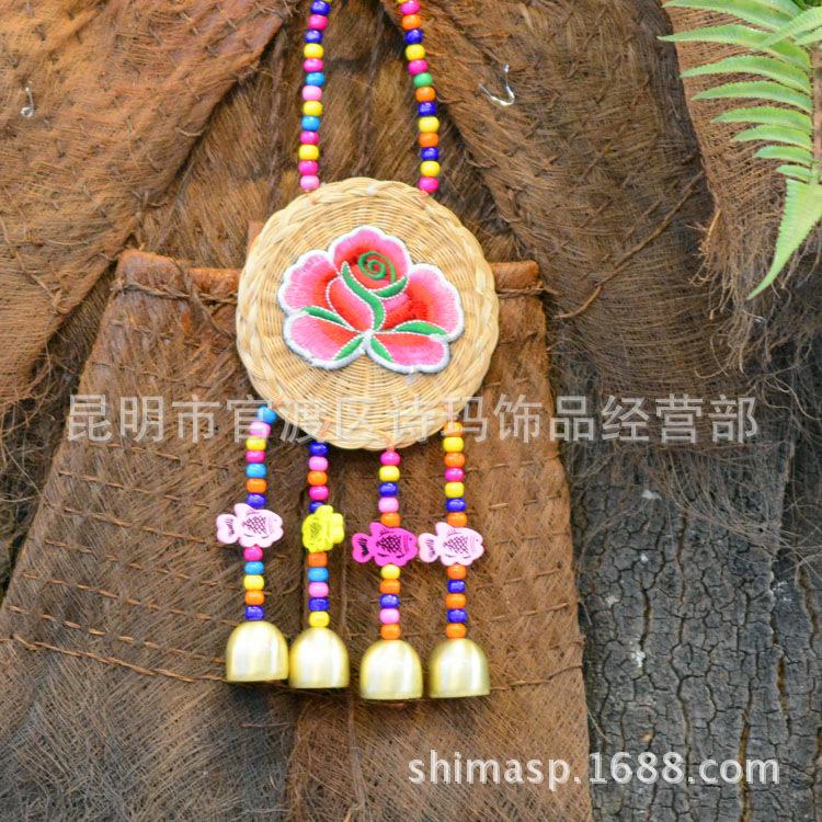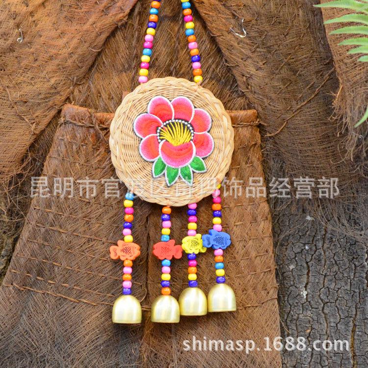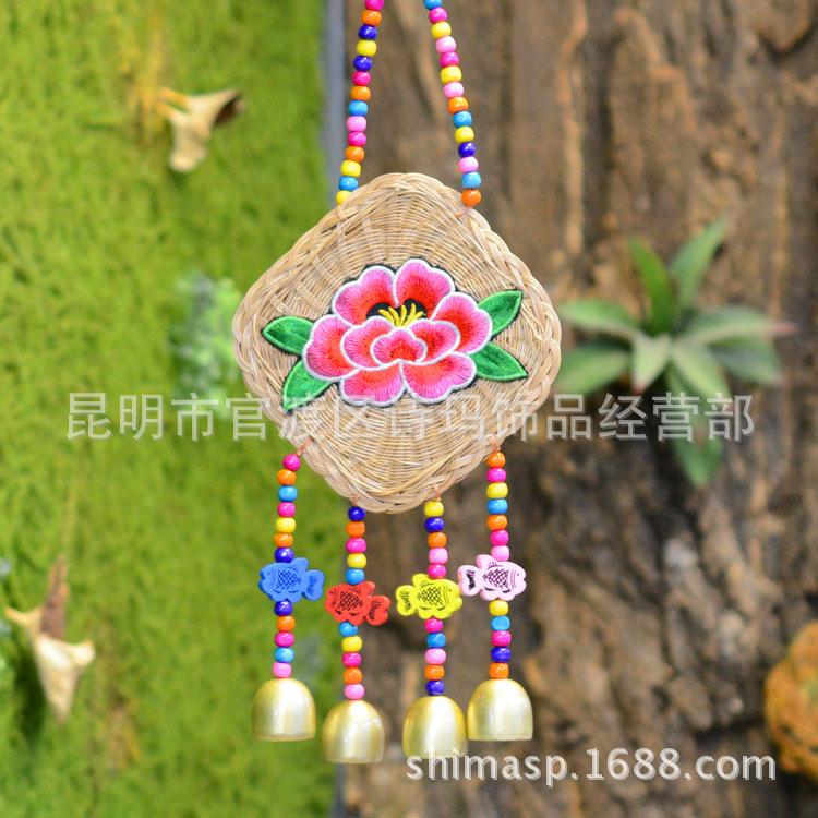 Posavasos bordado de venta caliente Carrillón de viento de bambú de 5 campanas bar posada jardín de infancia adornos colgantes de ratán redondo