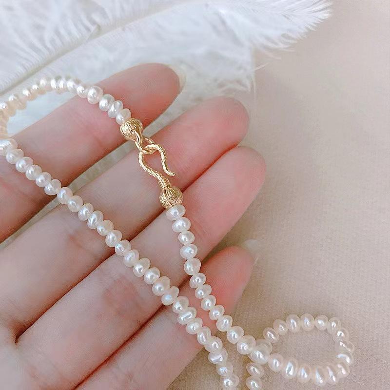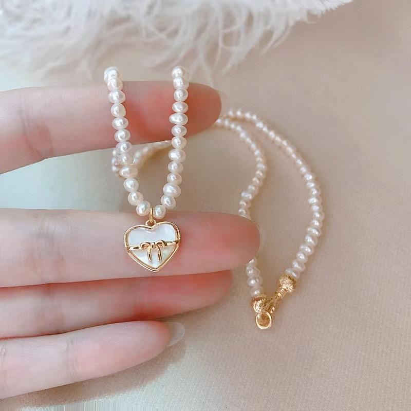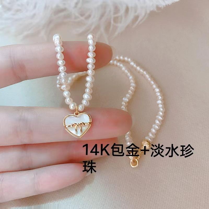 Compra Collar de perlas barrocas naturales de oro de 14 quilates con colgante de amor, cadena de clavícula para mujer, cadena de collar elegante, sencilla y ligera de lujo. al por mayor en Joom.pro
