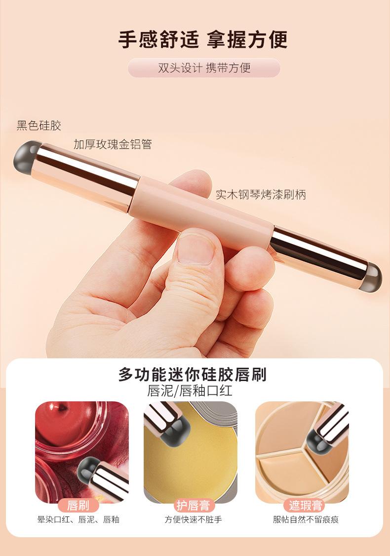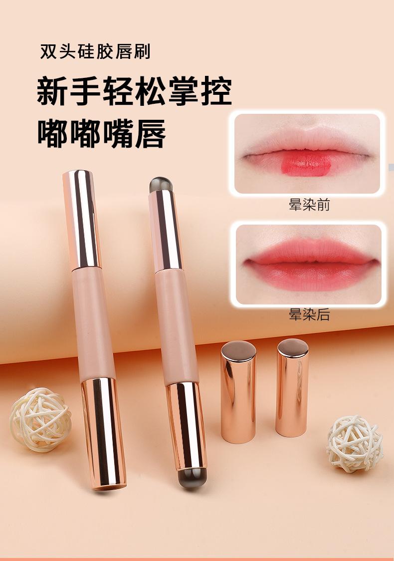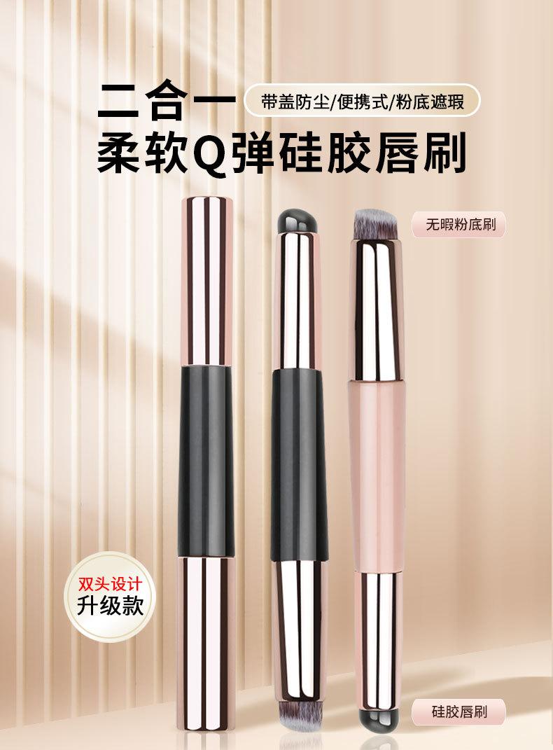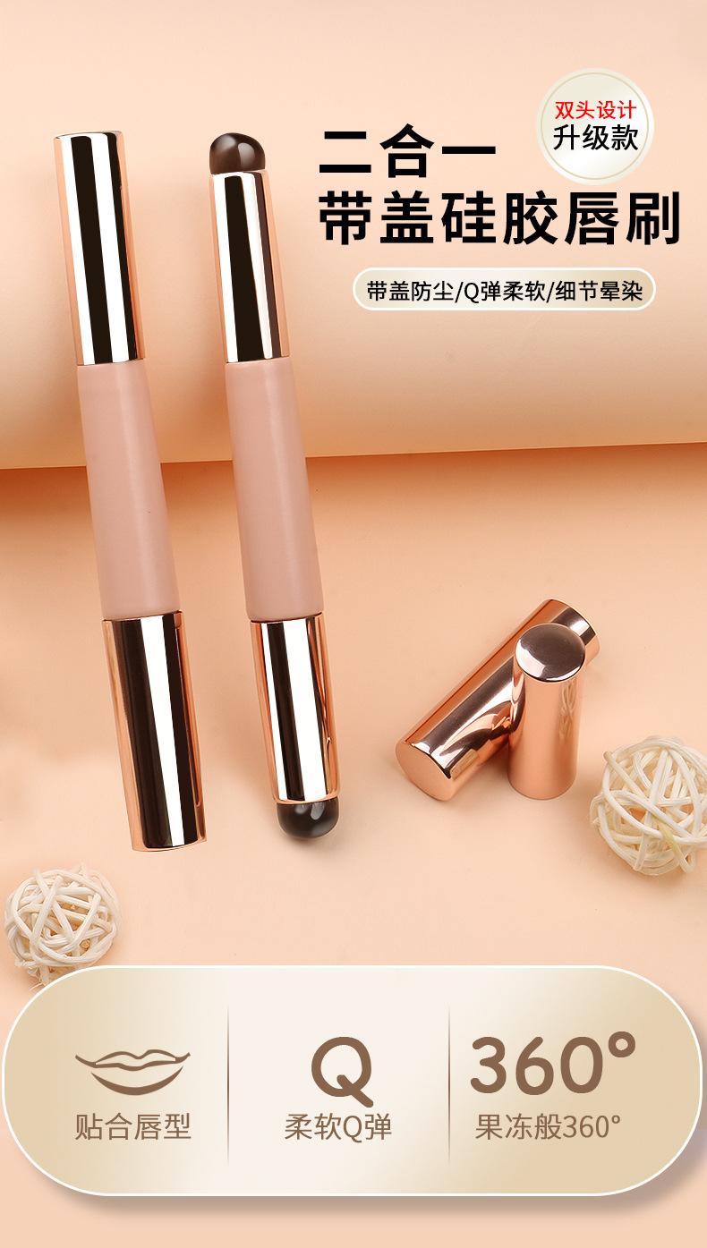 Tapa de doble extremo 2 en 1 de silicona para mezclar labiales, brocha para labios de doble tapa, a prueba de polvo, portátil, pluma de belleza, maquillaje de esteticista