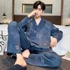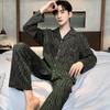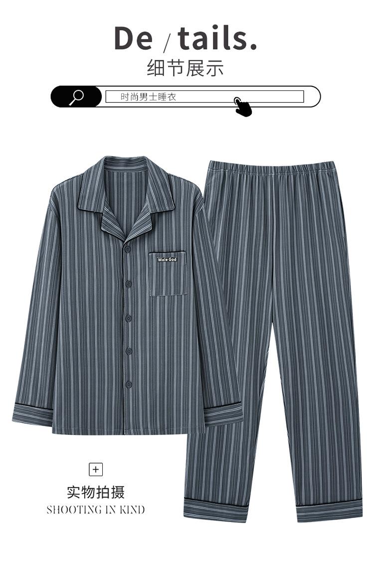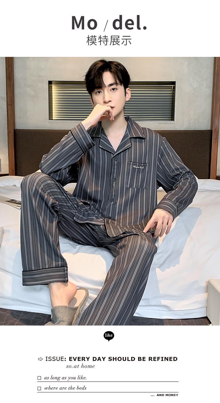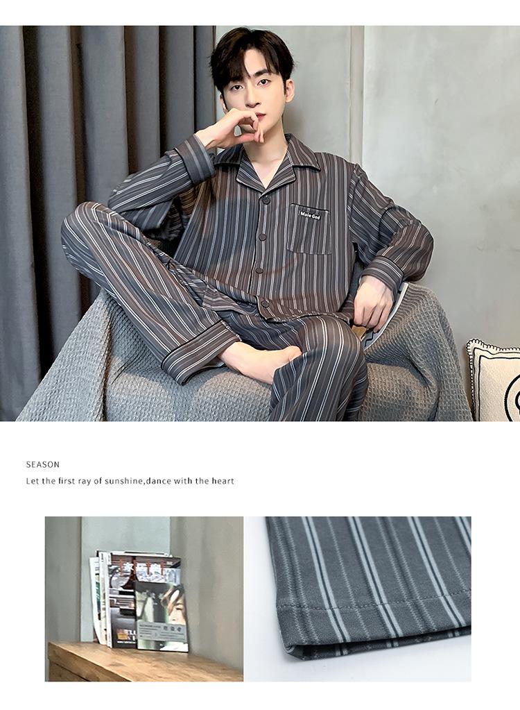 Pijamas al por mayor para hombre, primavera y otoño, algodón, manga larga, informal, a rayas, para hombre joven, otoño e invierno, finos, de talla grande, ropa de casa