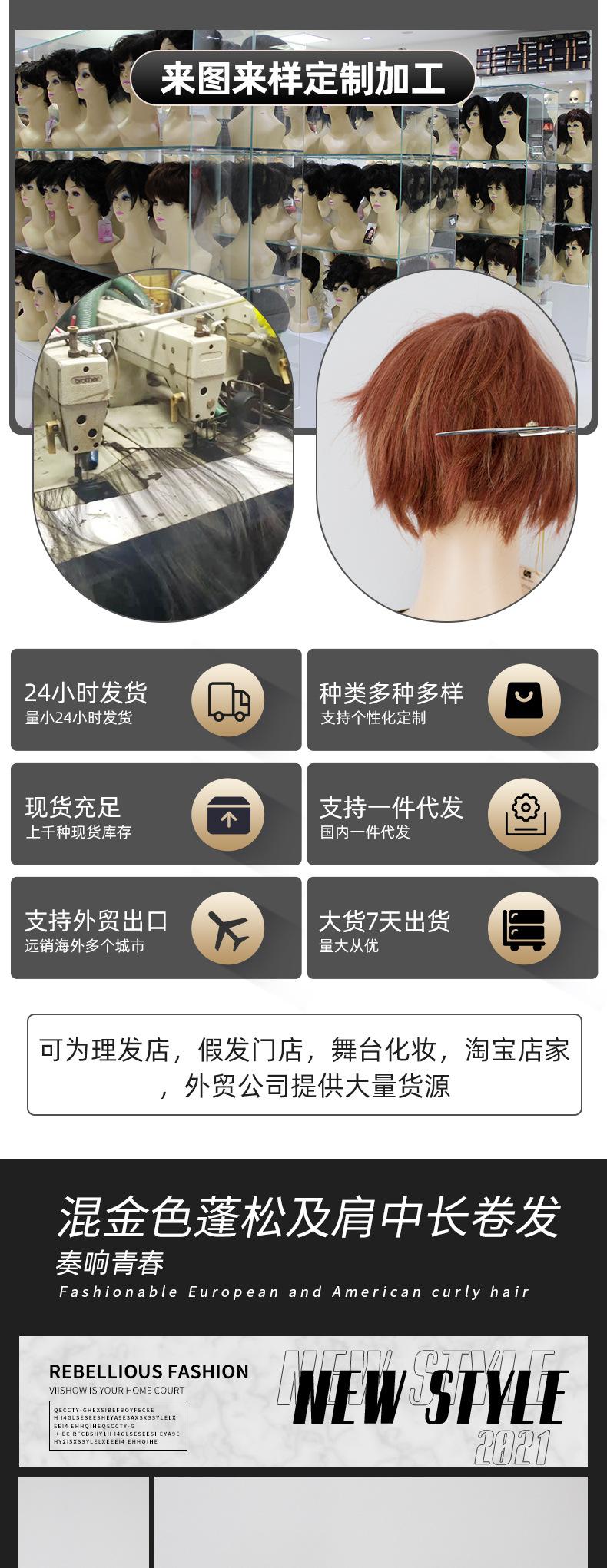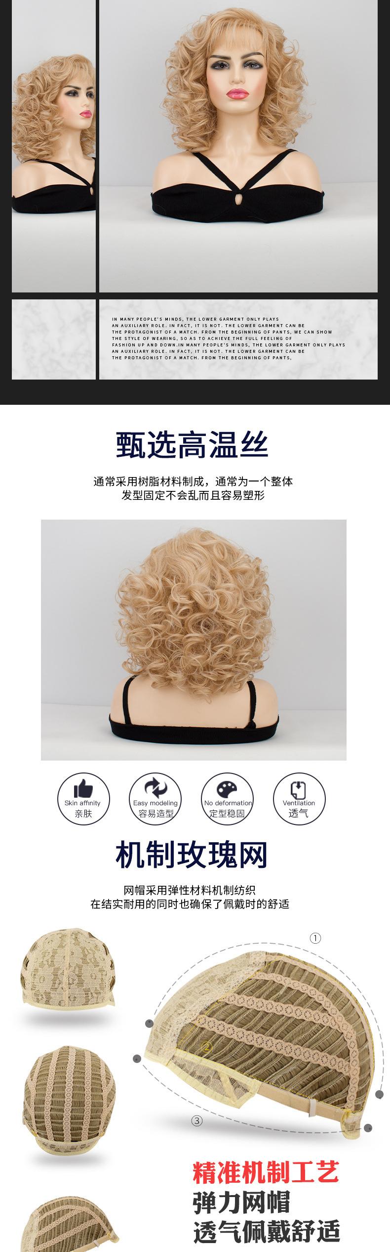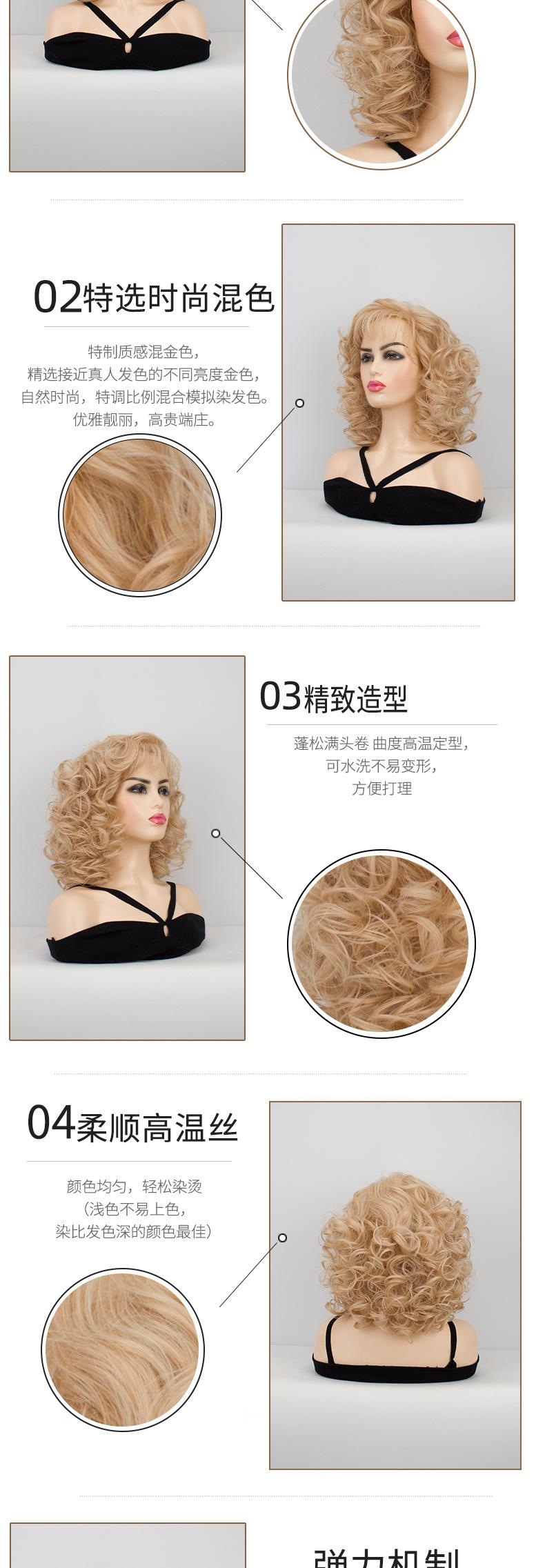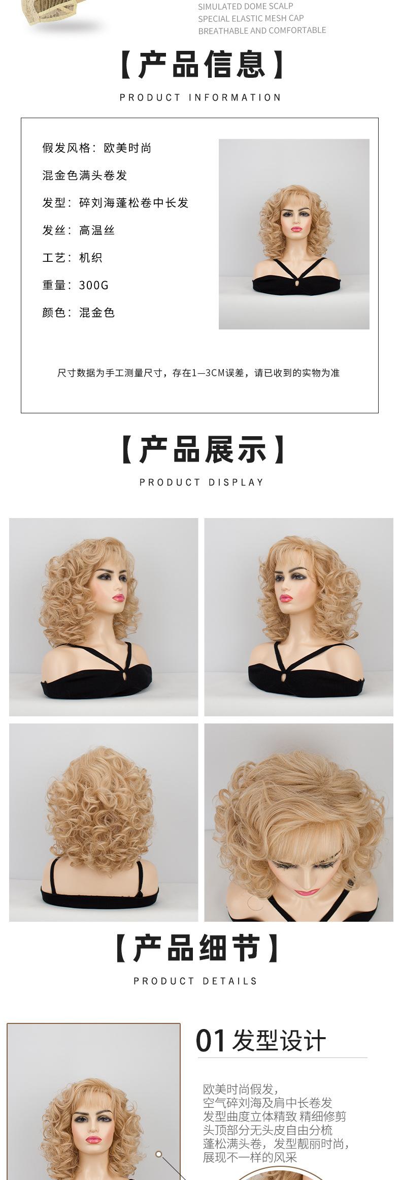 Peluca de comercio exterior mixta Dorada Esponjosa de gran volumen larga hasta el hombro cabello rizado flequillo roto al aire peluca de rollo de cabeza completa tocado