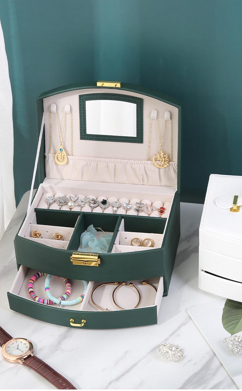 Caja de Joyería Caja de Almacenamiento Bolso de Mano Doble Capa Gran Capacidad Joyería Aretes Accesorios para el Cabello Anillo Collar Aretes Pulsera Aretes Caja