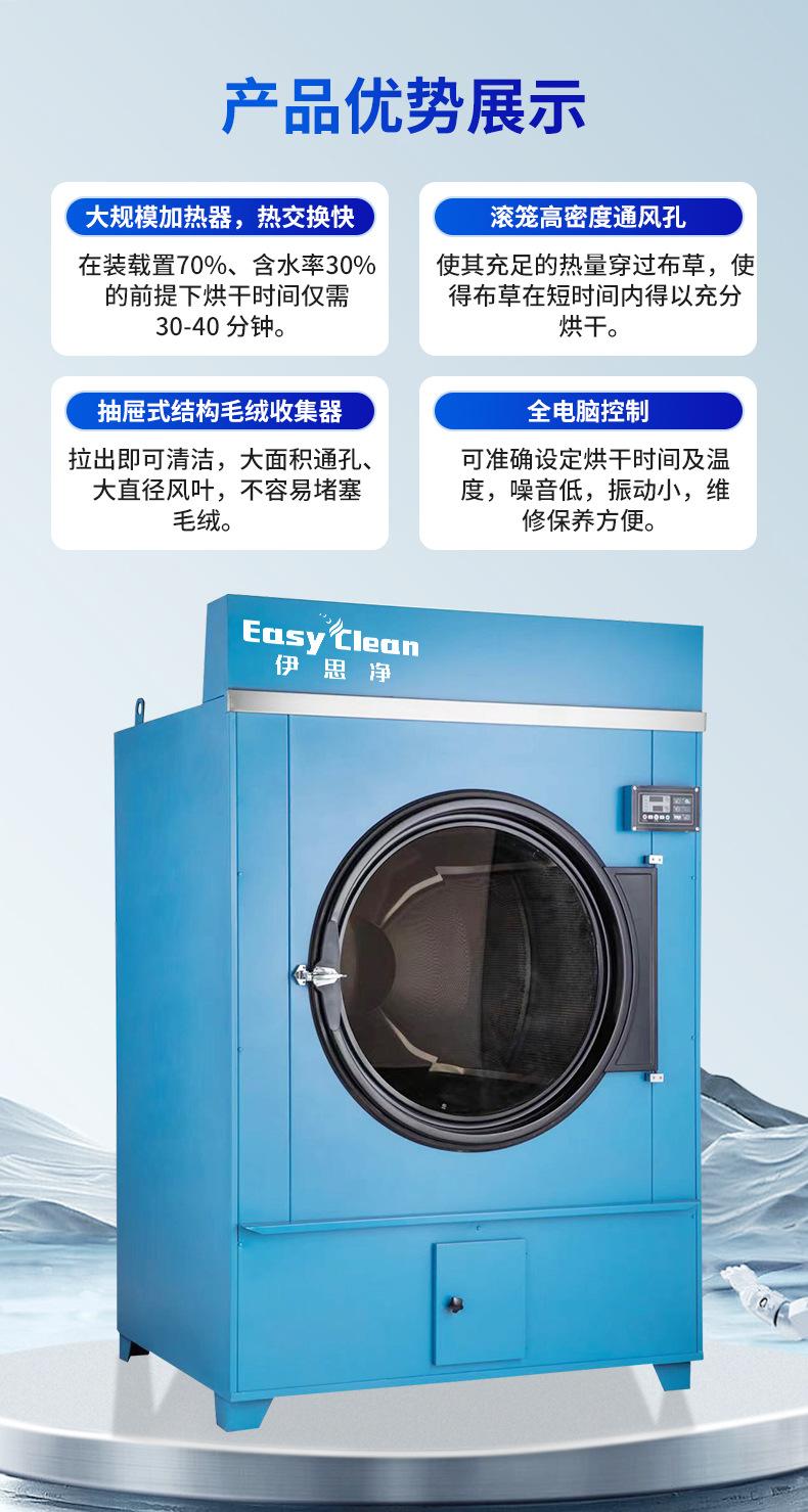 Secadora de hotel de 30 kg, planta de lavado, secadora de ropa blanca, secadora de tambor para ropa de trabajo de 100 kg