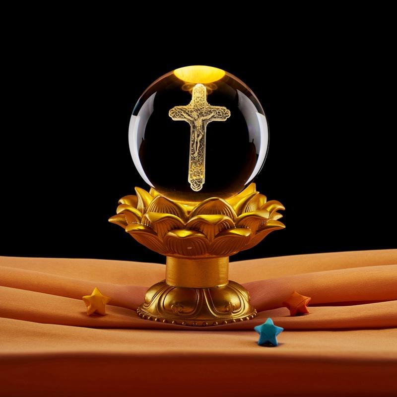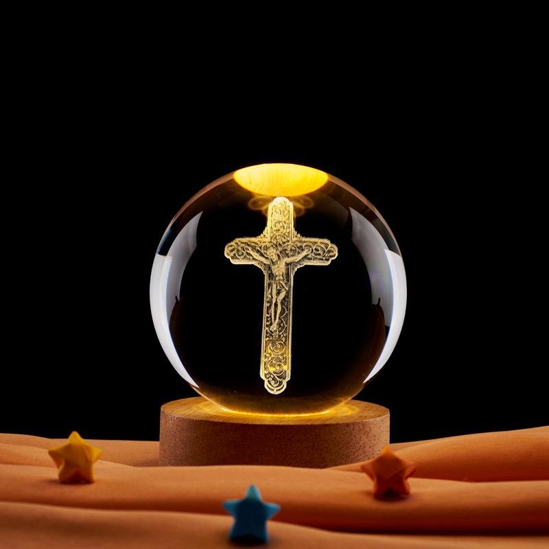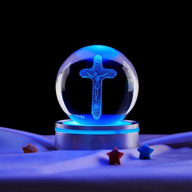 Bola de cristal luminosa con grabado láser tridimensional 3D, luz nocturna, adornos creativos, venta al por mayor transfronteriza