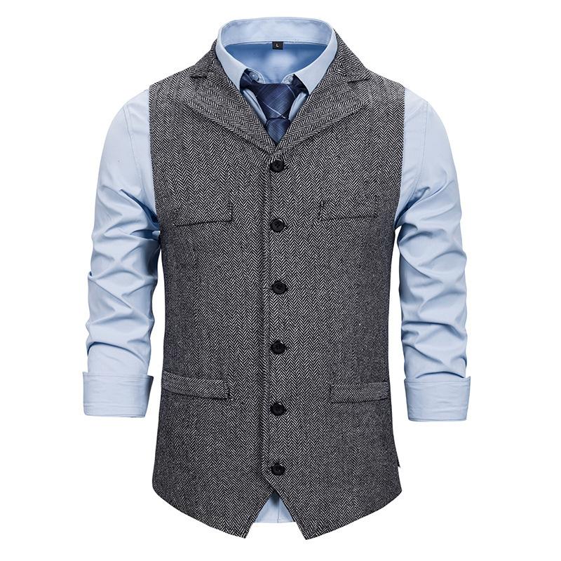 Comercio Exterior Chaleco de Espiga para Hombre Solapa Simple Pecho Chaqueta Chaleco Traje Juvenil sin Mangas Transfronterizo Amazon