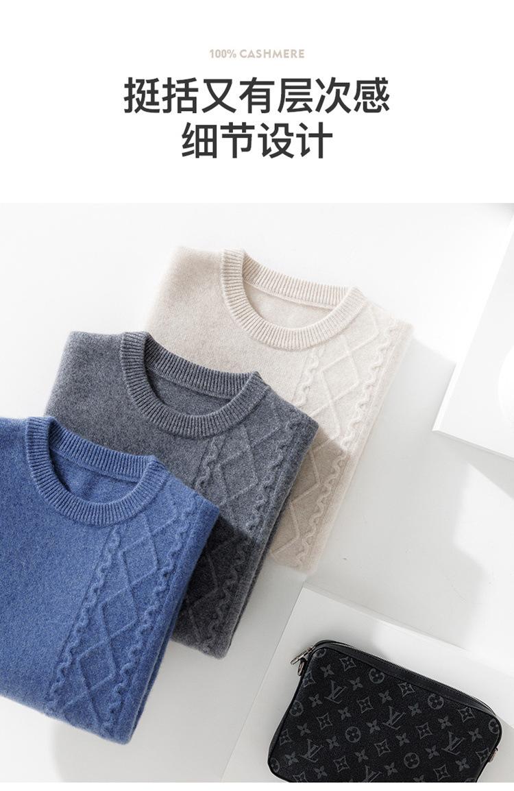 Suéter de punto grueso de cachemira para hombre, informal, holgado, con cuello redondo, color liso, a cuadros de diamantes, para otoño e invierno, para jóvenes