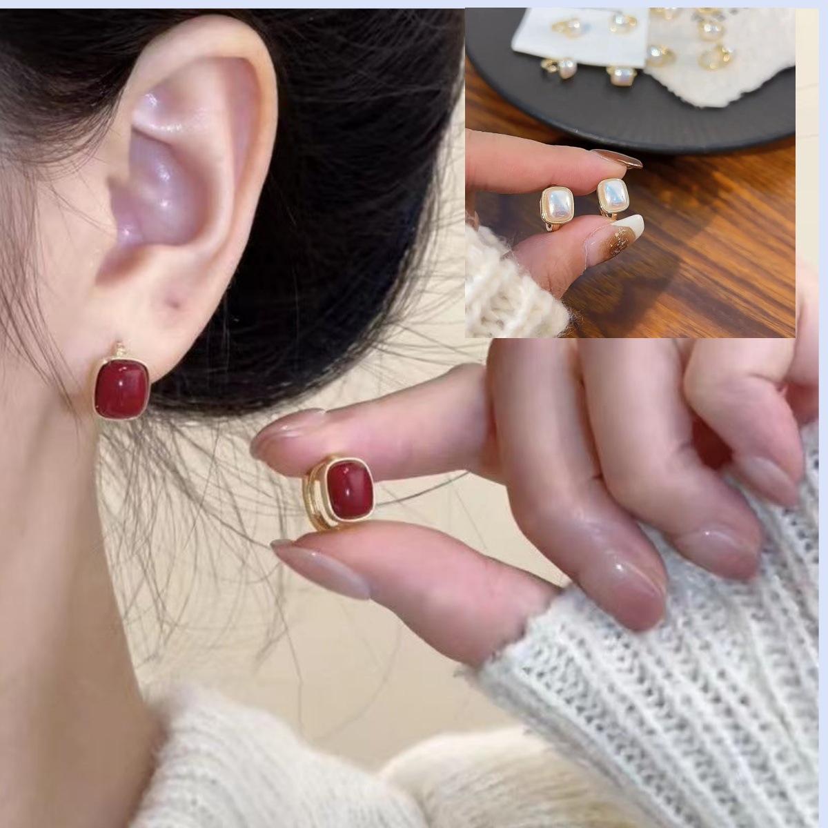 Pendientes de perla roja retro francesa cuadrada, diseño de nicho femenino, pendientes de alta calidad, pendientes de moda exquisitos que combinan con todo.