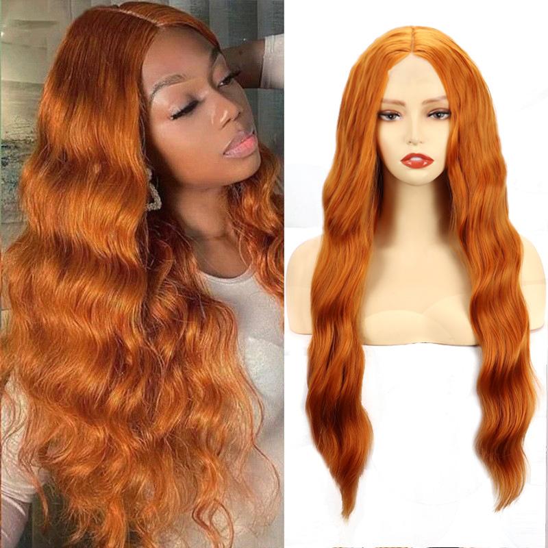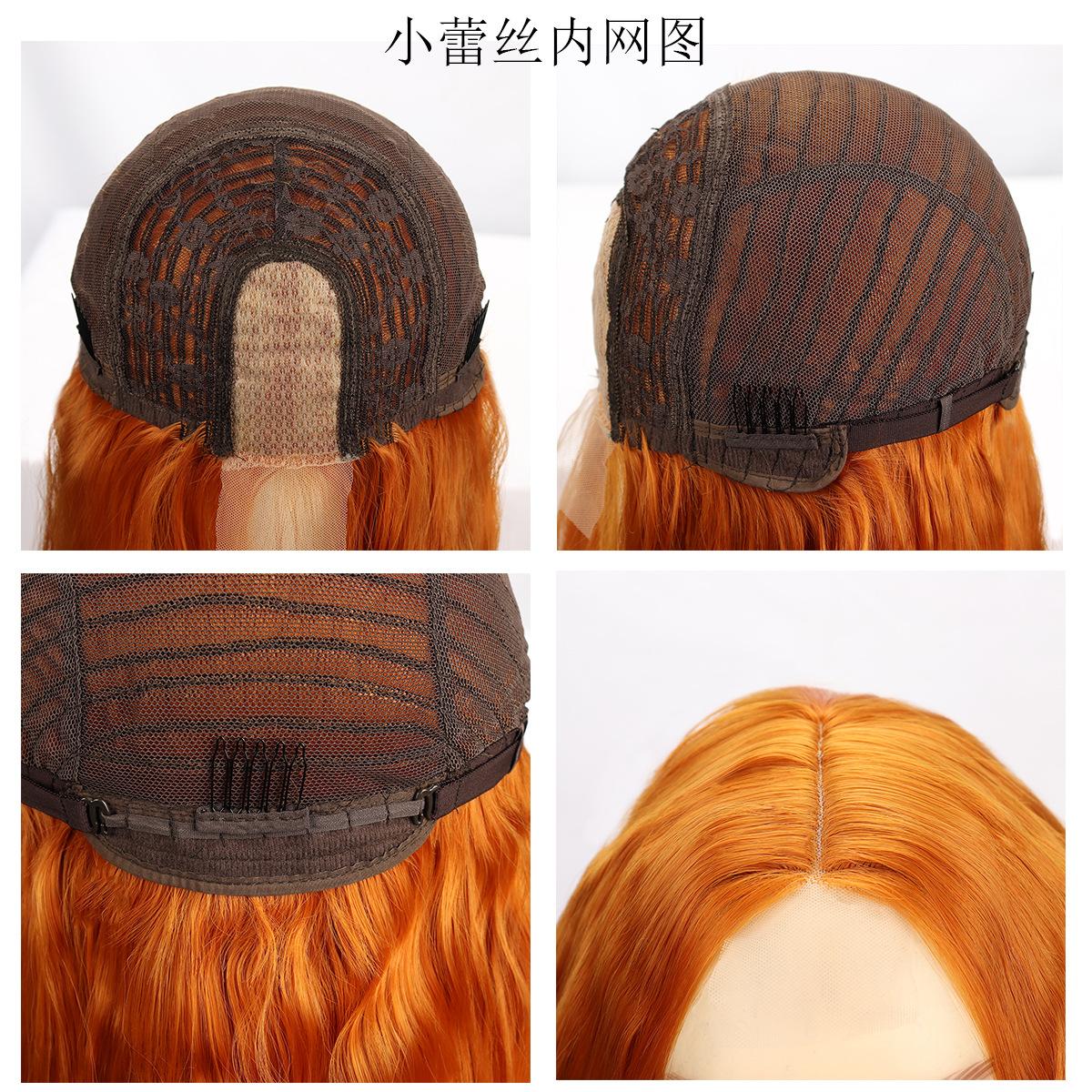 Peluca pequeña de encaje transfronteriza Europa y Estados Unidos para mujer, cabello largo rizado naranja, onda grande, pelucas de fibra química, una generación de cabello