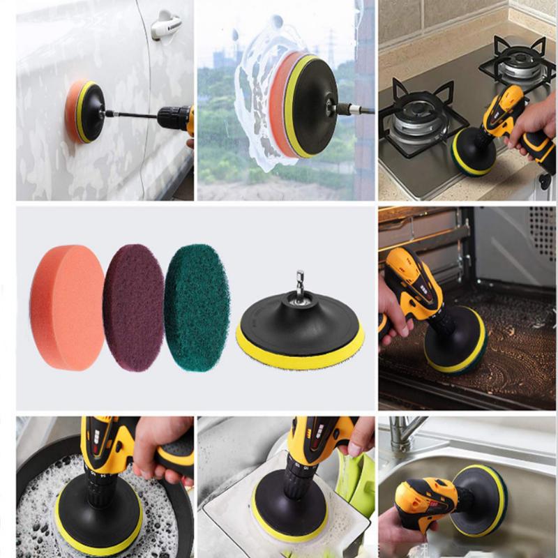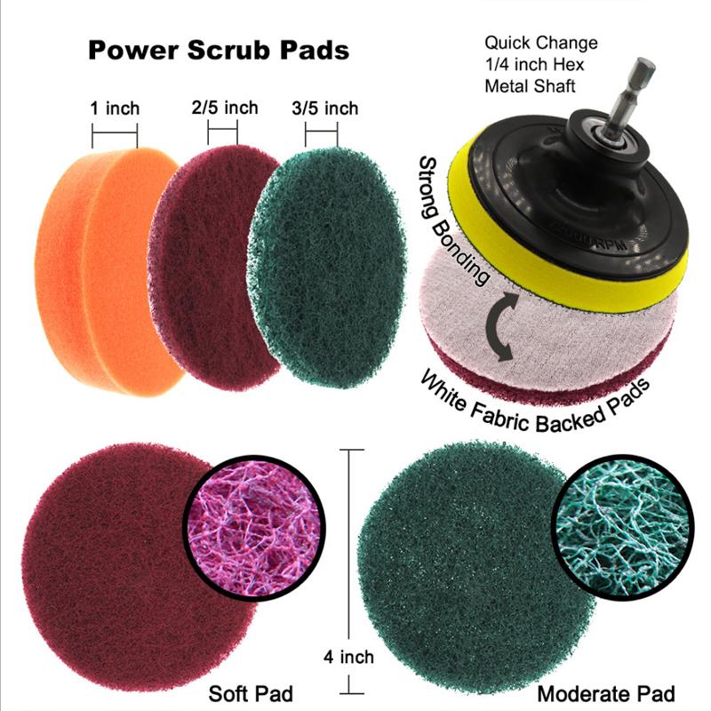 Juego de Cepillos Eléctricos para Taladro con Disco Adhesivo de 11 Piezas Limpieza de Baño Cocina Coche Pulido Encerado Estropajo Cepillo Eléctrico de Limpieza