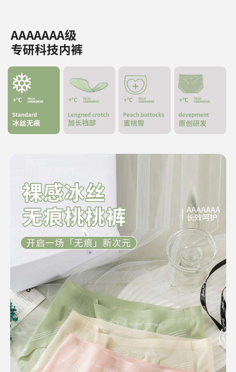 Ropa interior ultrafina de seda de hielo sin rastro, 10D, color melocotón, con entrepierna extendida, de algodón, antibacteriana, para mujer