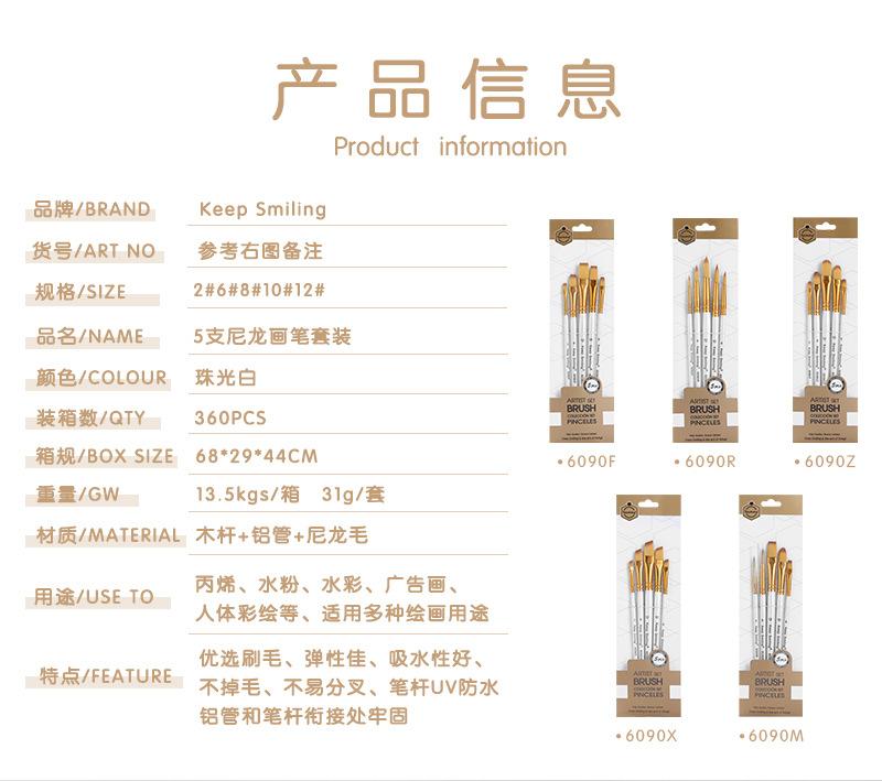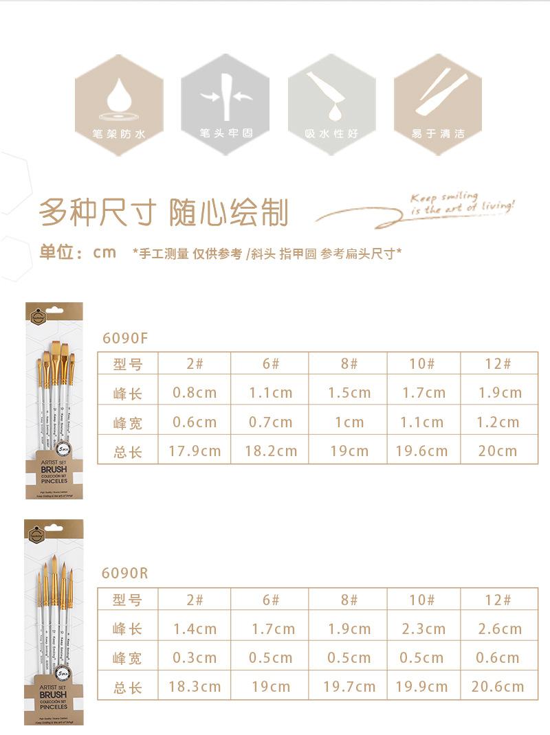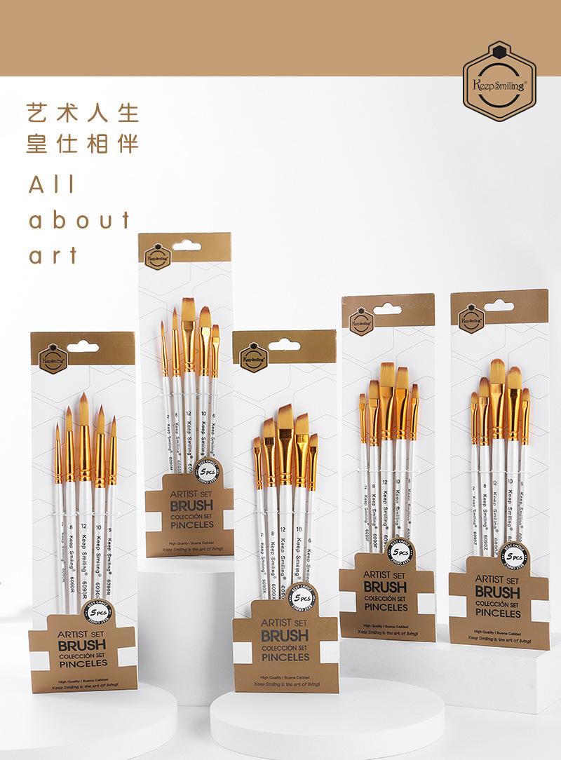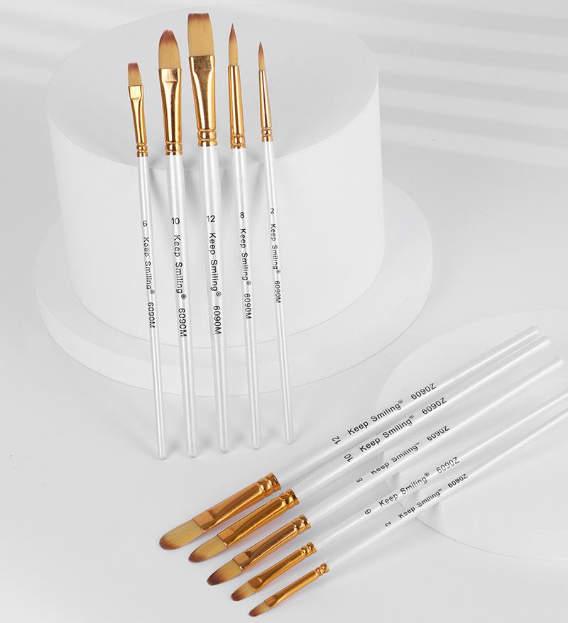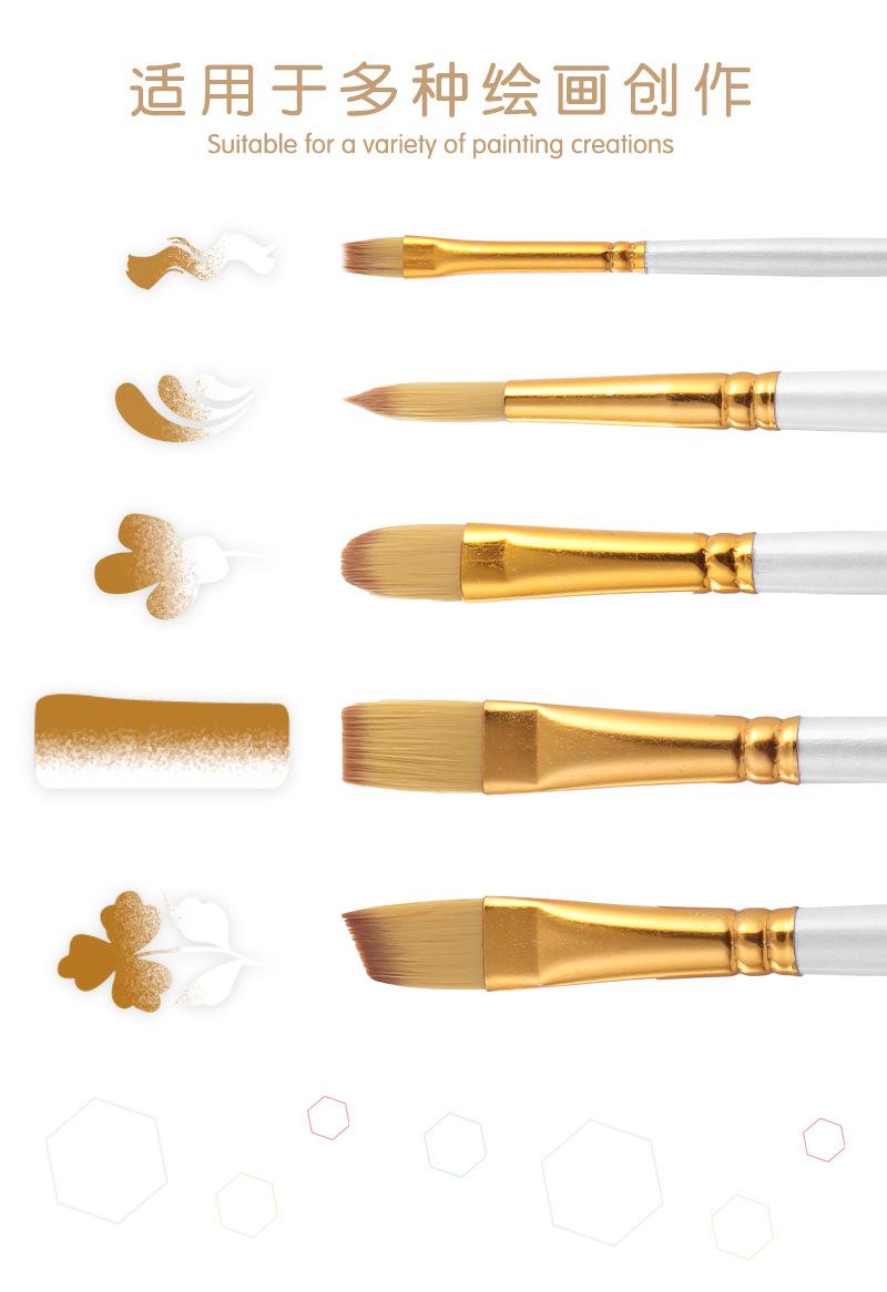 Set de Pinceles de Nailon de Suministro Transfronterizo 5 Pinceles Blancos para Pintura de Acuarela, Acrílico, Gouache, Pintura de Grafiti, Tablero de Pintura