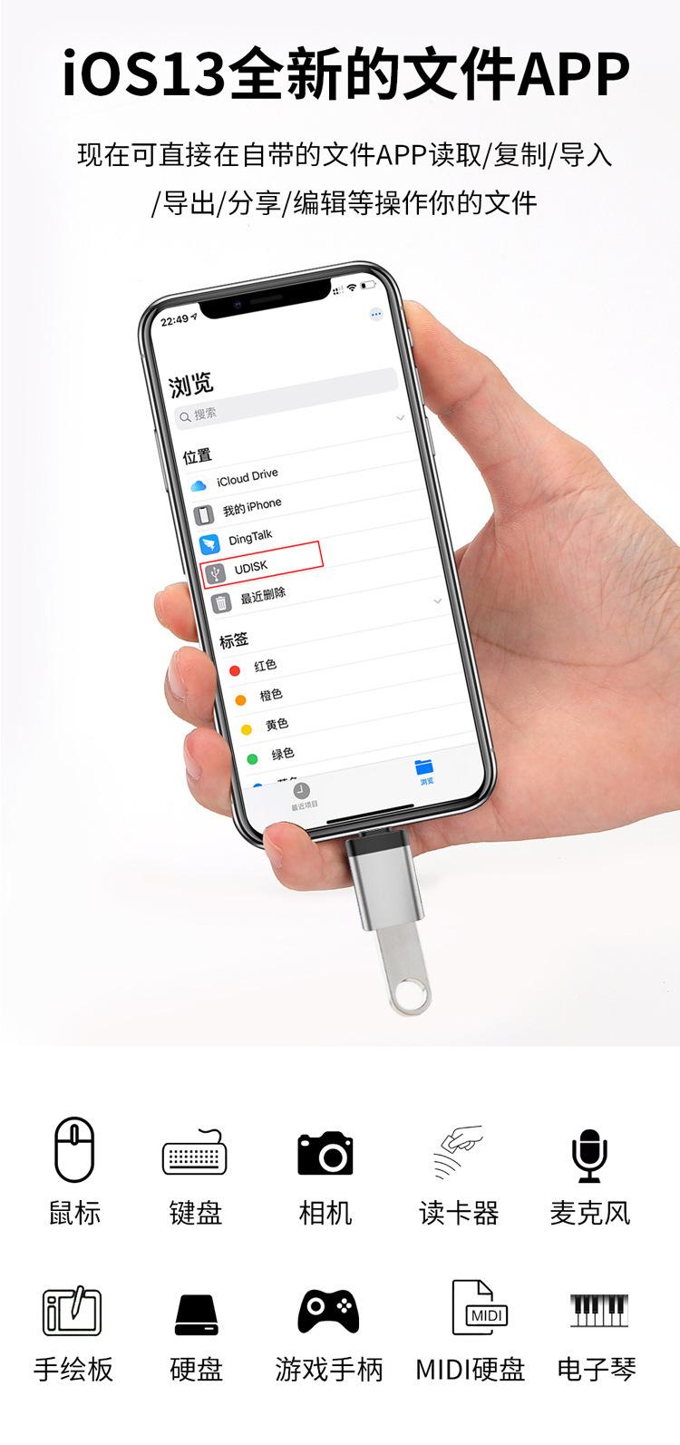 Aplicable al adaptador OTG de Apple, convertidor de Lightning a USB, adaptador de disco U para teléfono móvil iPhone, datos