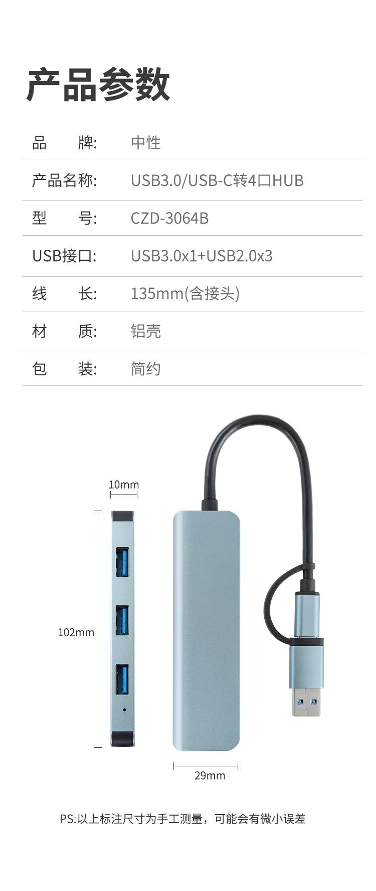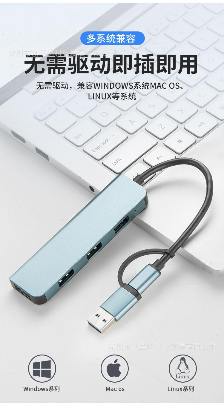 Usb2.04 port hub, Double-head 4-port hub, Double-head 3-port usb+1-port type-c
