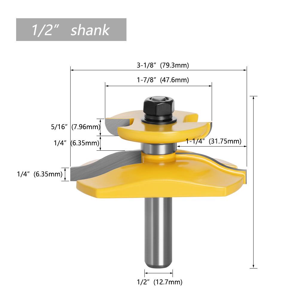 Los mangos de las fresas para carpintería incluyen: 3 mm, 6 mm, 1/4" (6,35 mm), 8 mm, 12 mm, 1/2" (12,7 mm)