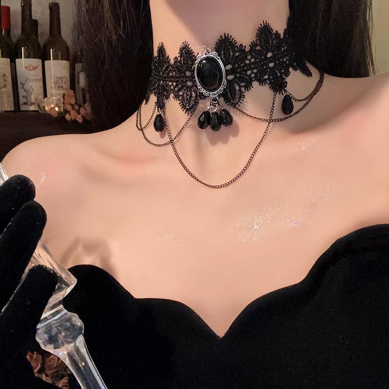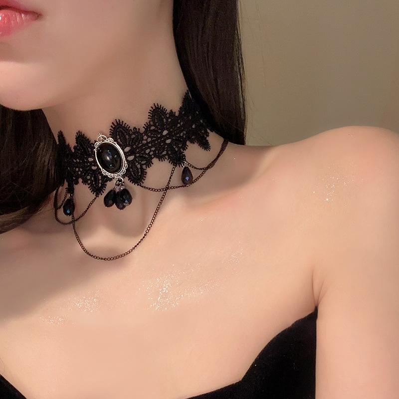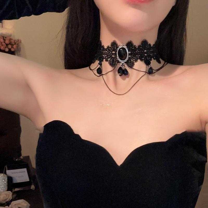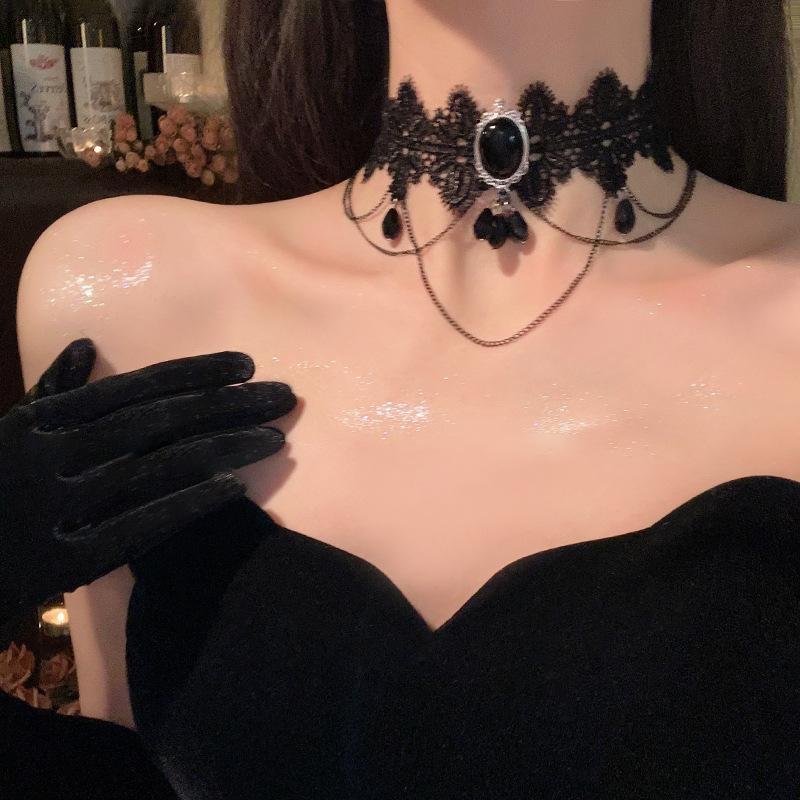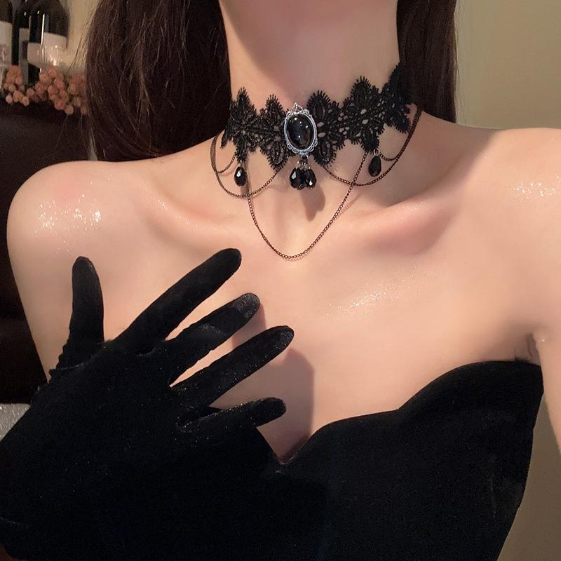 Collar Negro Correa para el Cuello de Mujer Encaje de Abstinencia Accesorios de Halloween Maquillaje Accesorios para el Cuello Cadena para Clavícula Gargantilla