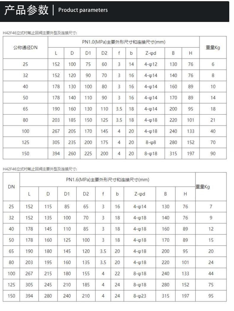 Válvula de Retención H42F46-16 Válvula de Retención con Revestimiento de Flúor Válvula Antirretorno Válvula de Retención de PTFE Acero Fundido Acero Inoxidable