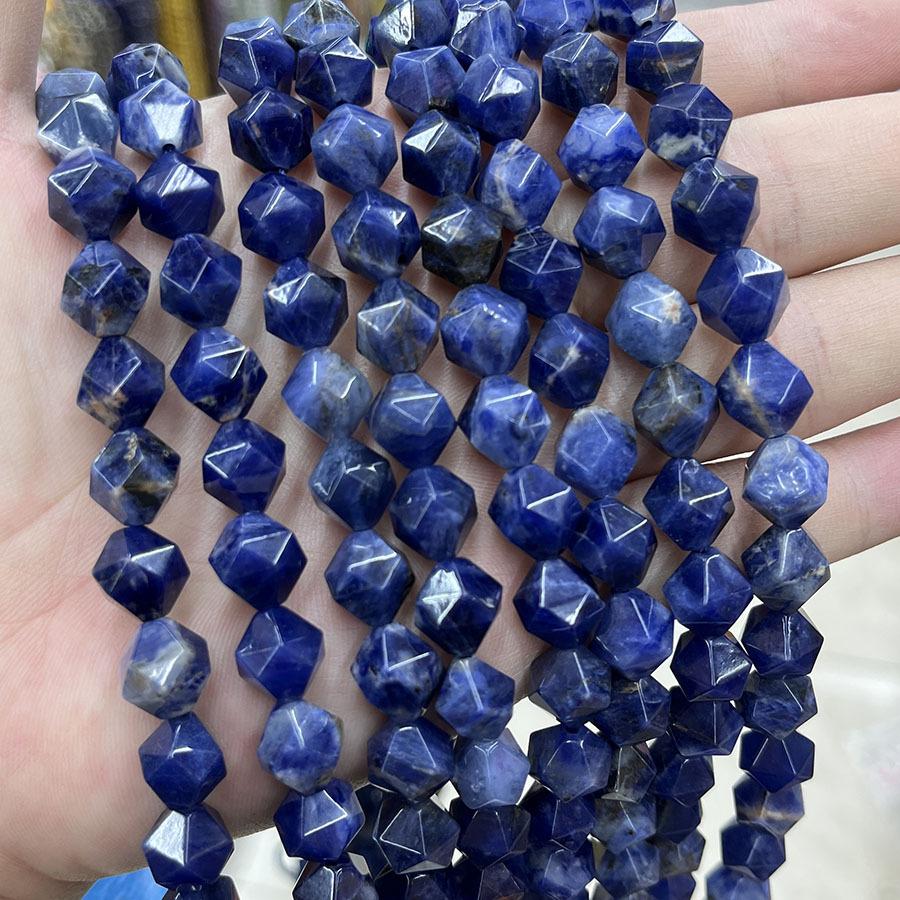 Pulsera de cuentas de piedra de rayas azules naturales cortadas con piedra original, collar, pulsera artesanal semiacabada, accesorios de joyería de cristal