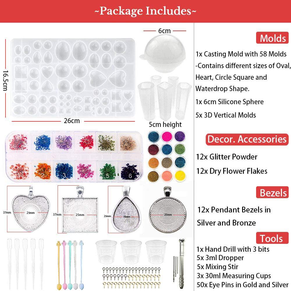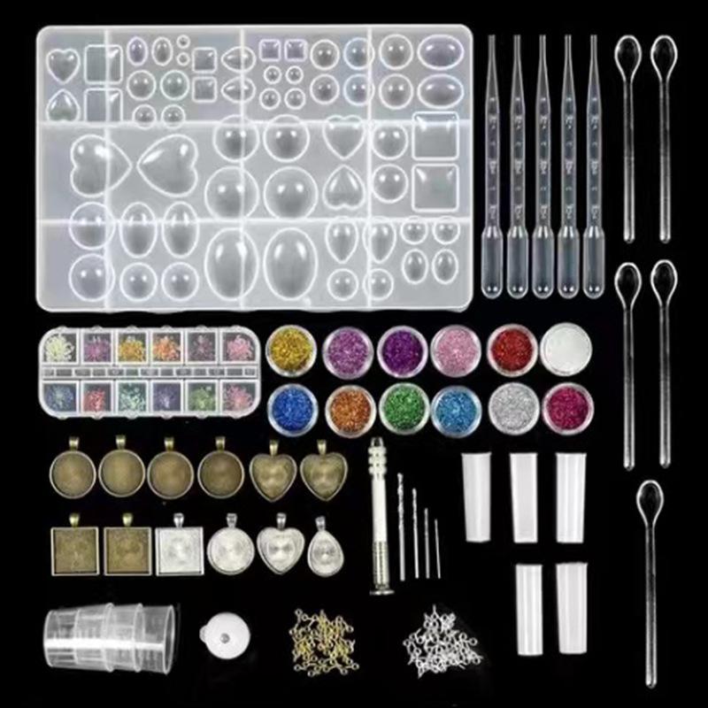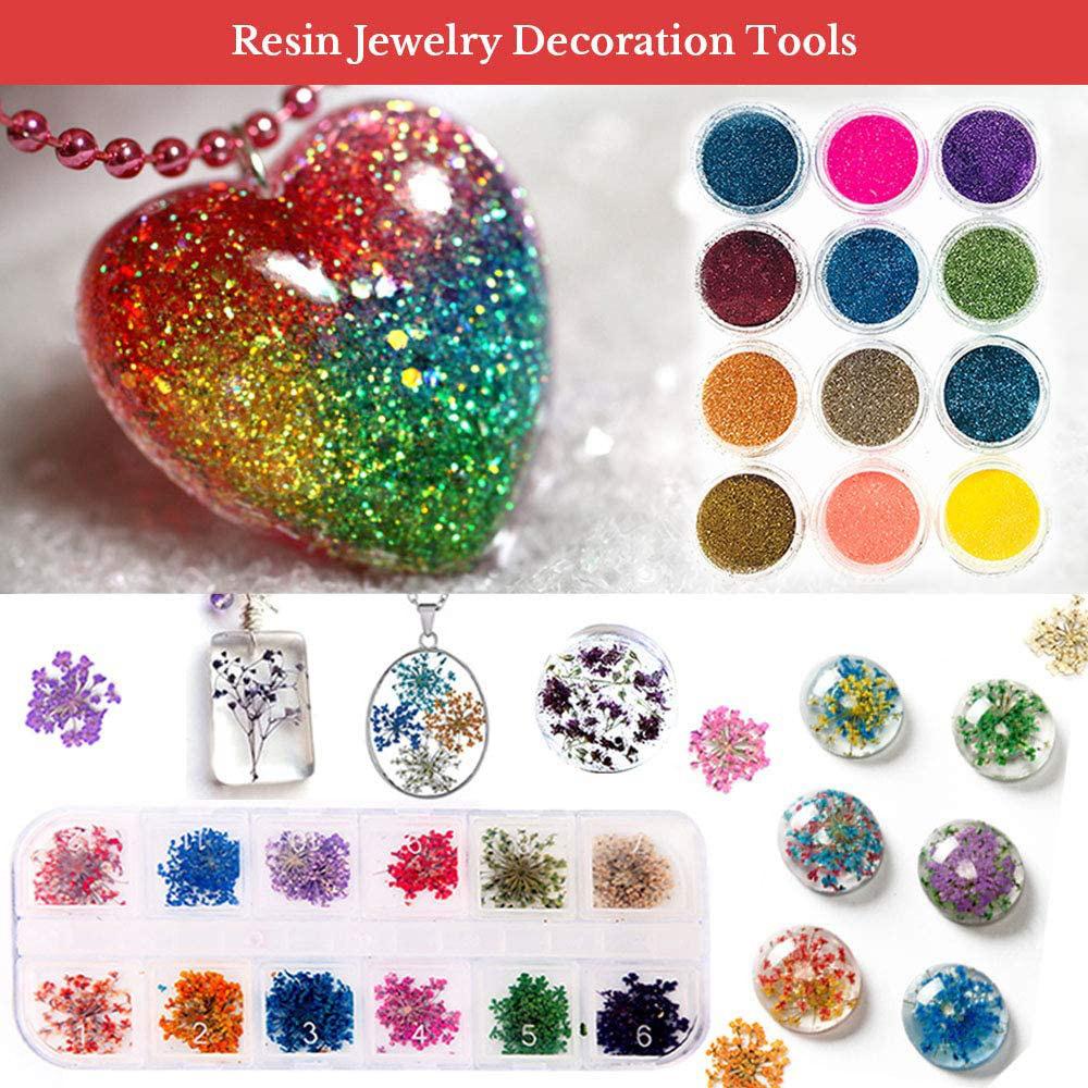 Molde de silicona para colgante de flor seca, collar y joyería, con 107 y 61 piezas de gemas de cristal