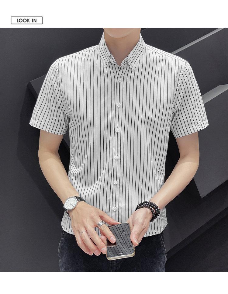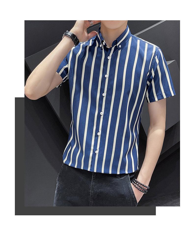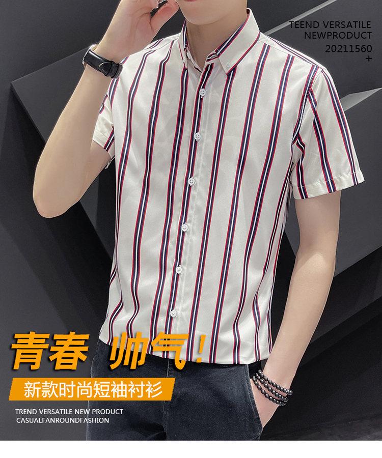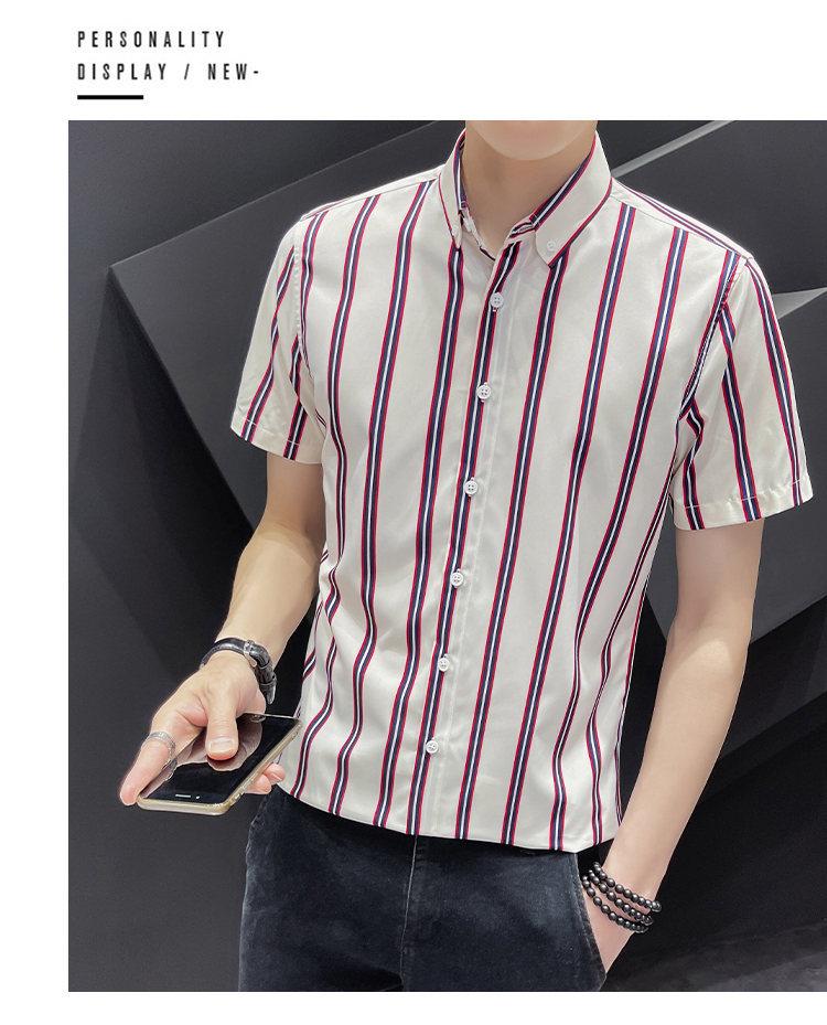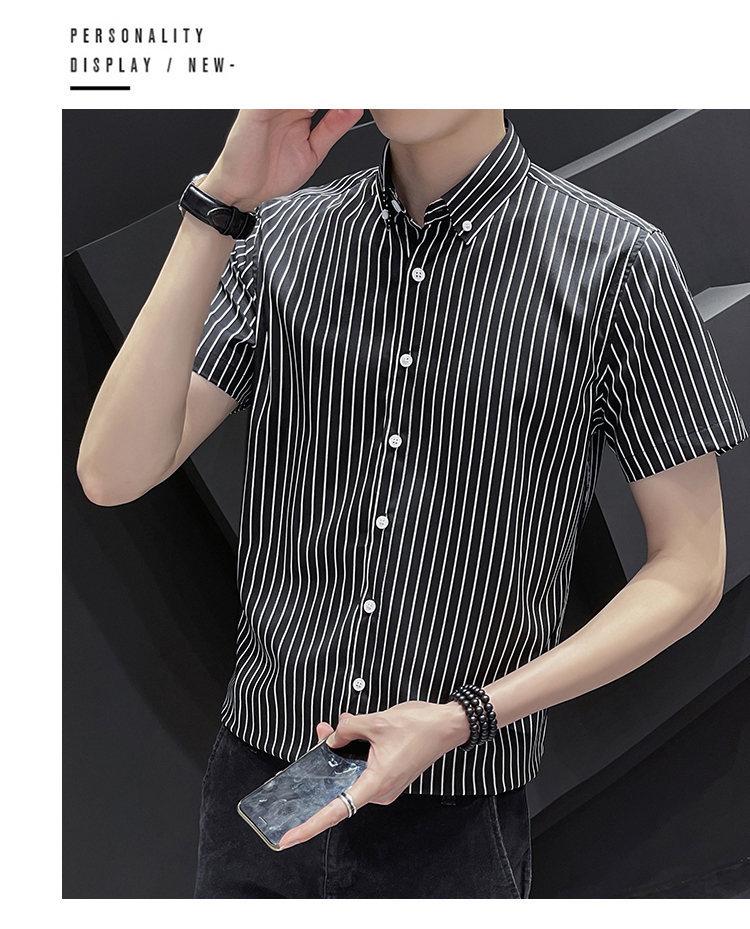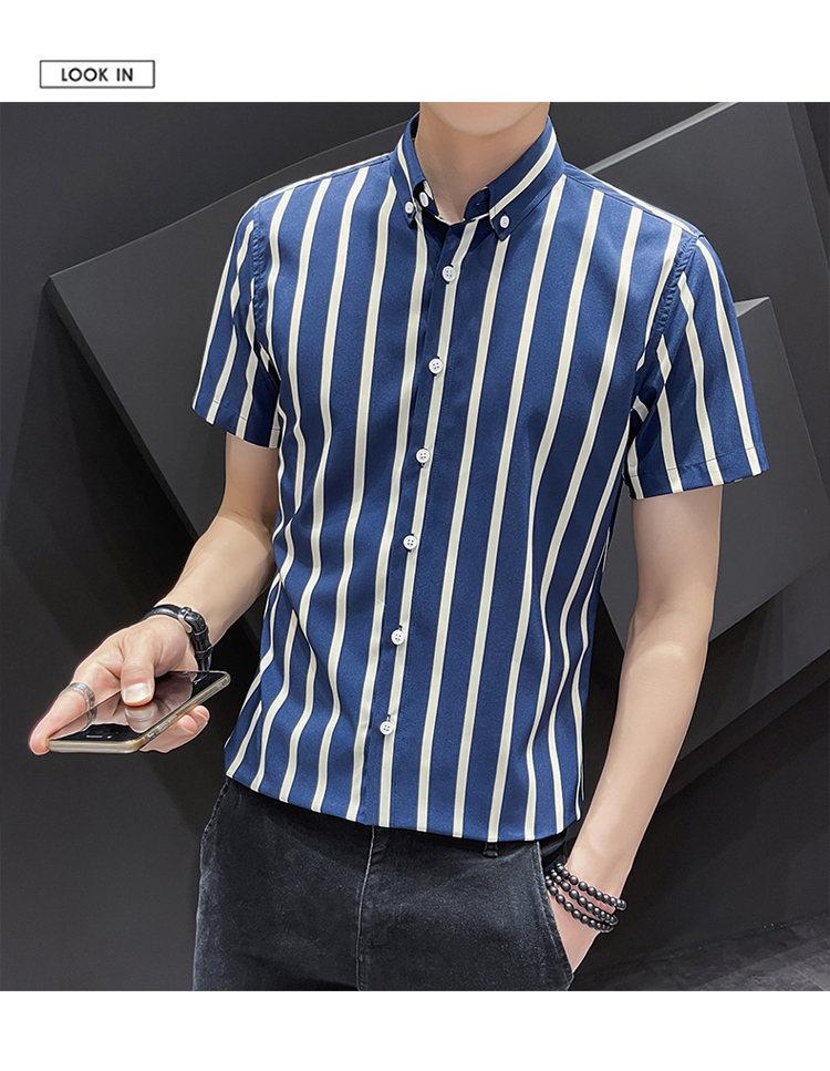 Camisa de moda masculina de comercio exterior transfronterizo 2024 Camisa de manga corta a rayas versátil de verano nueva moda para hombre
