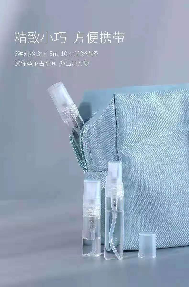 En stock, muestra portátil, botella de spray de perfume, subbotella de 2-3-5 ml, botella de vidrio con pulverizador, prensa de pulverización, botella vacía