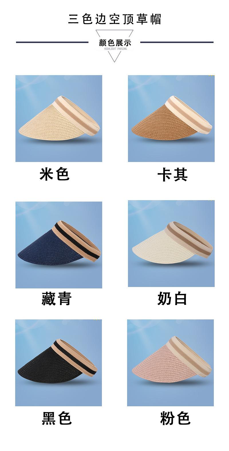 C0988 three-color empty top straw hat beige, C0988 three-color empty top Straw Hat Khaki, C0988 three-color em...
