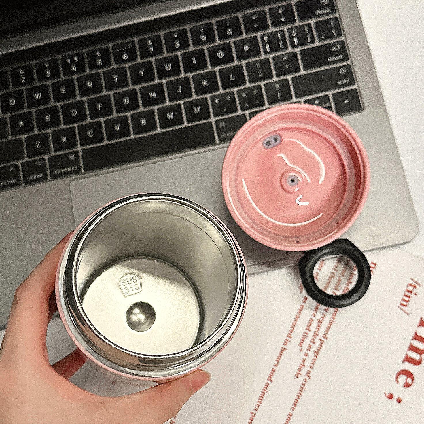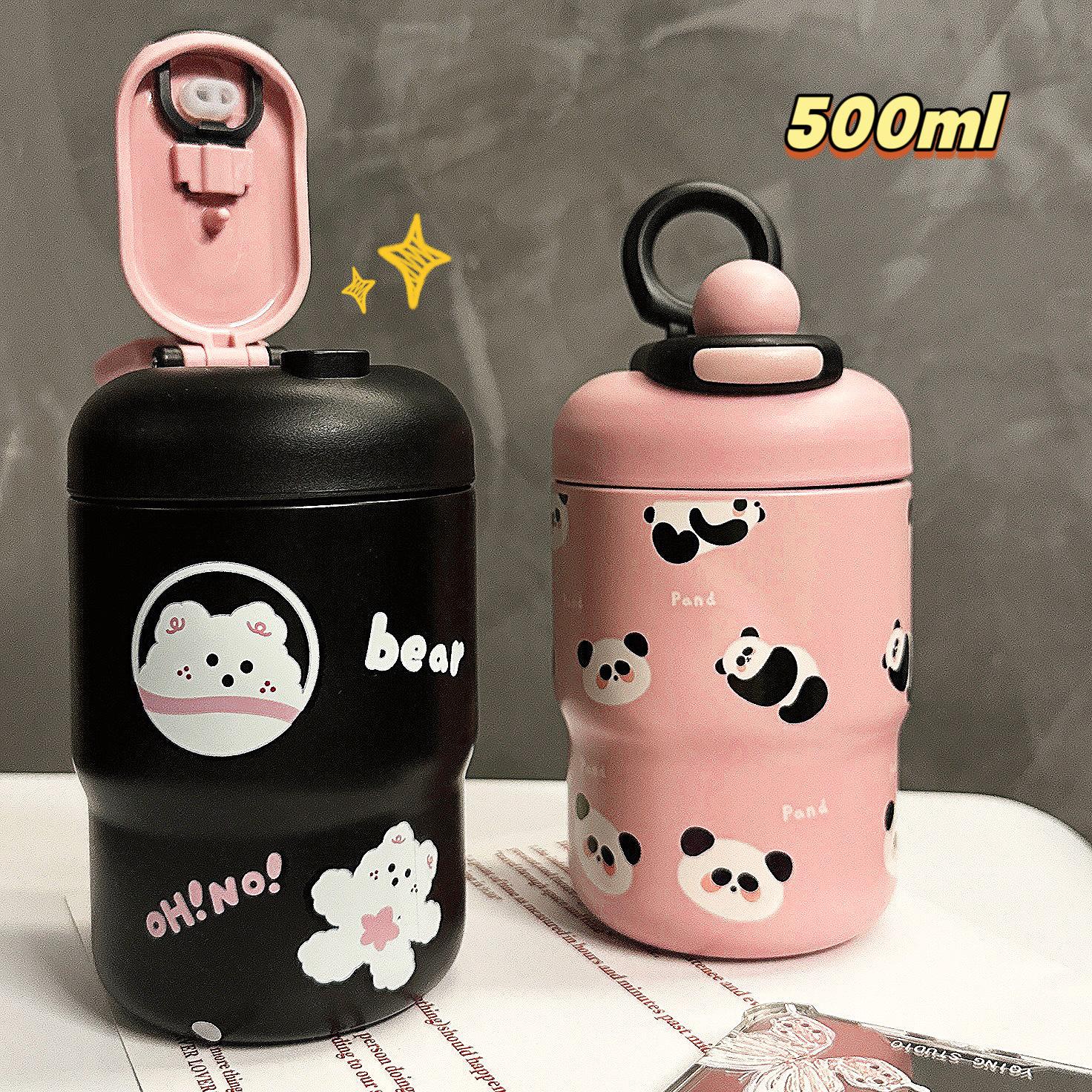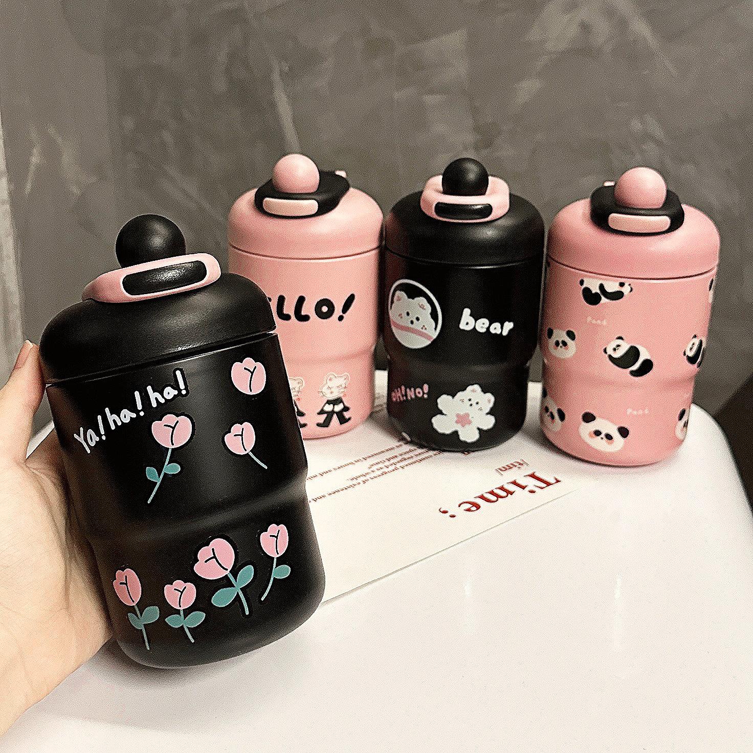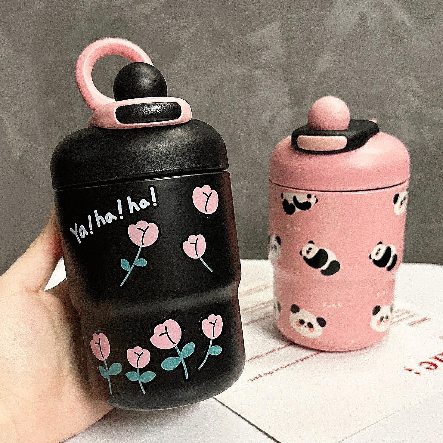 Taza térmica de dibujos animados para niña, taza de agua portátil de alto valor para beber directamente, regalo portátil para parejas y estudiantes, taza de acero inoxidable