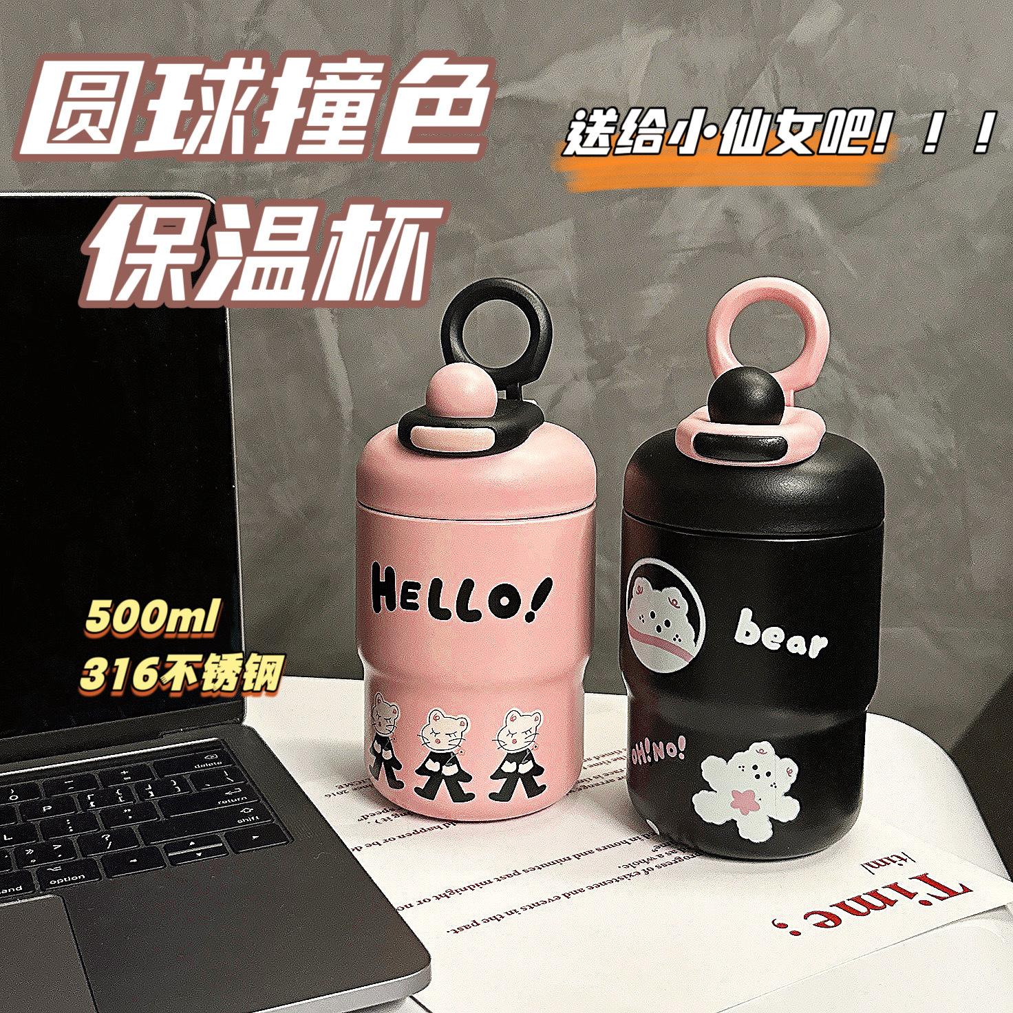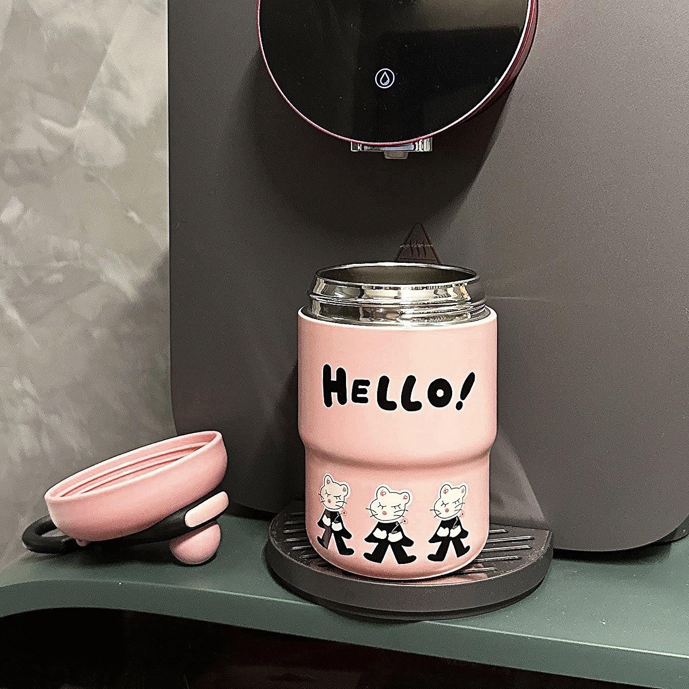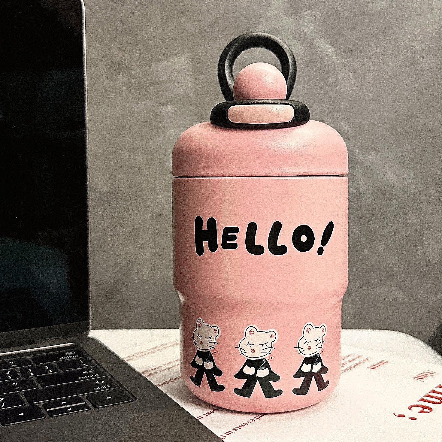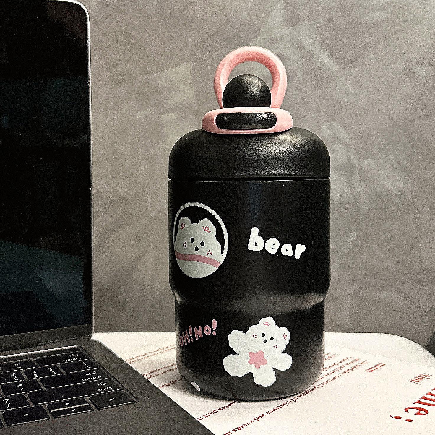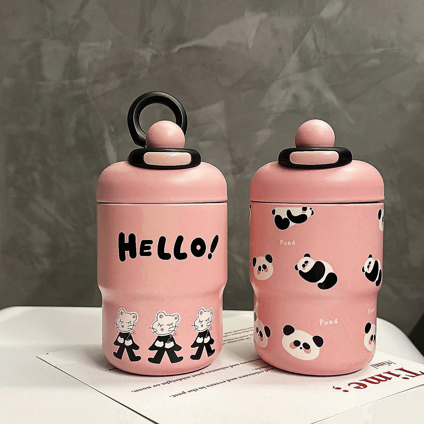 Taza térmica de dibujos animados para niña, taza de agua portátil de alto valor para beber directamente, regalo portátil para parejas y estudiantes, taza de acero inoxidable