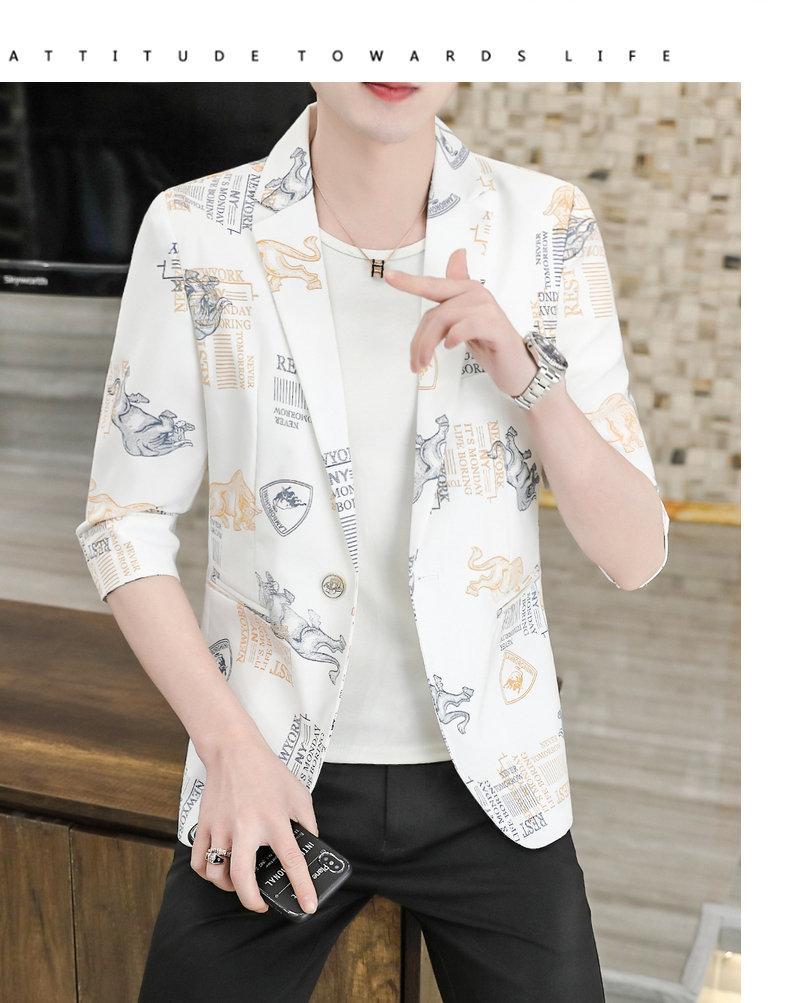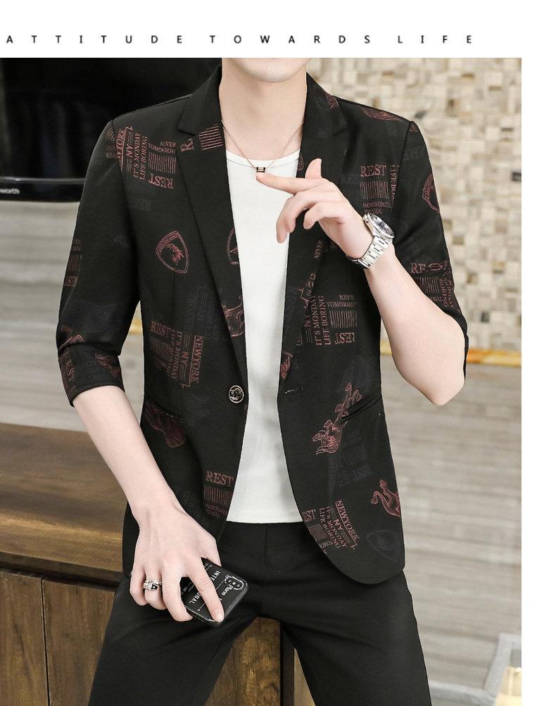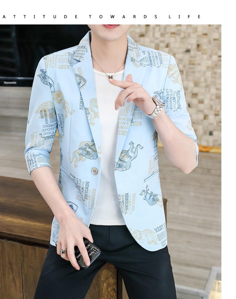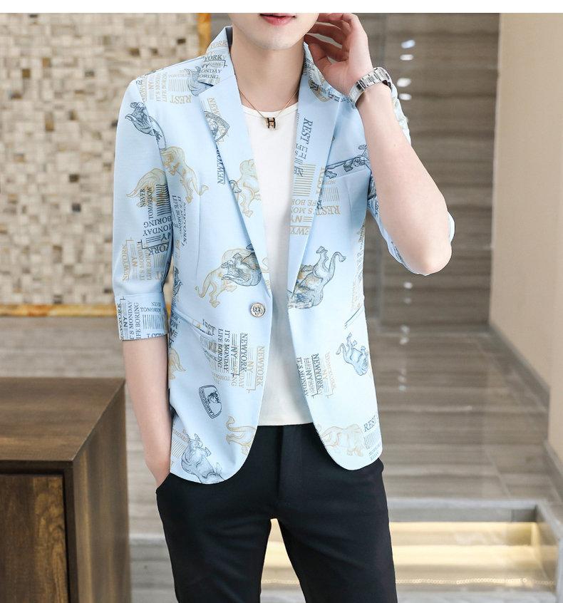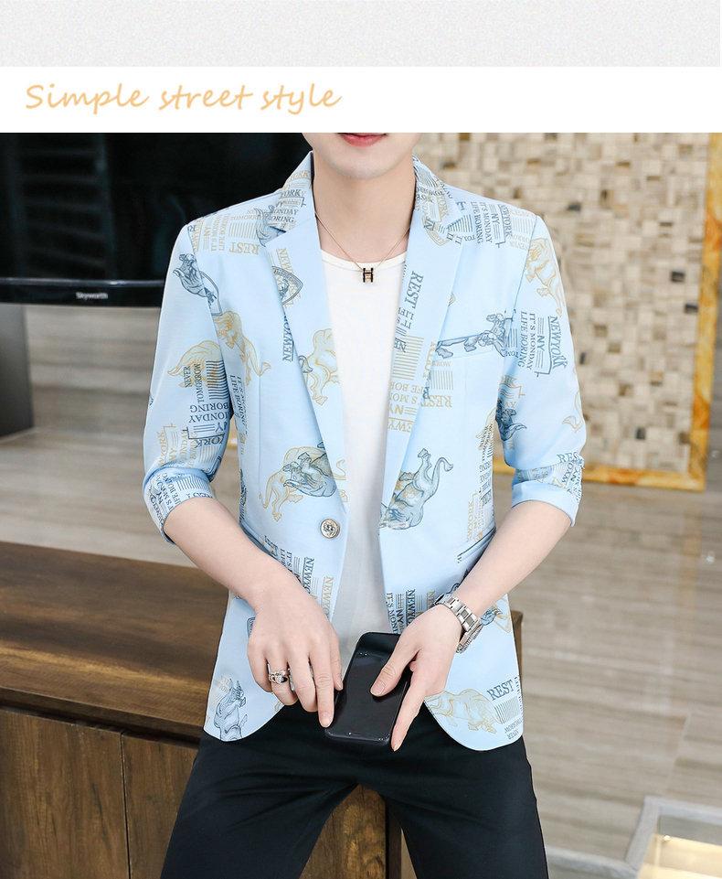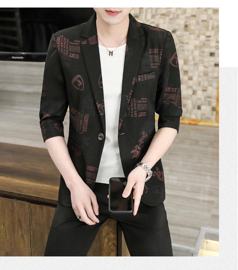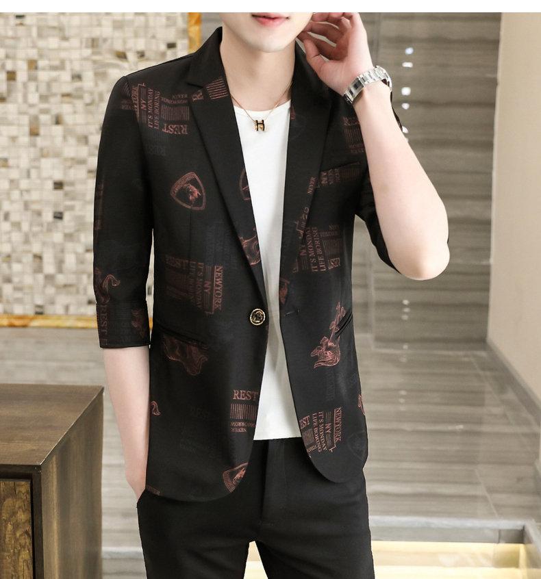 Traje pequeño de manga media para hombre, chaqueta estampada, estilo elegante, moda informal, verano 2023