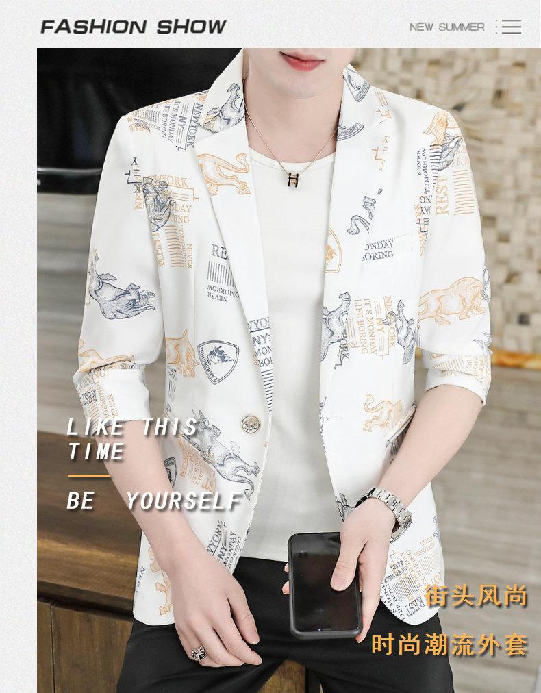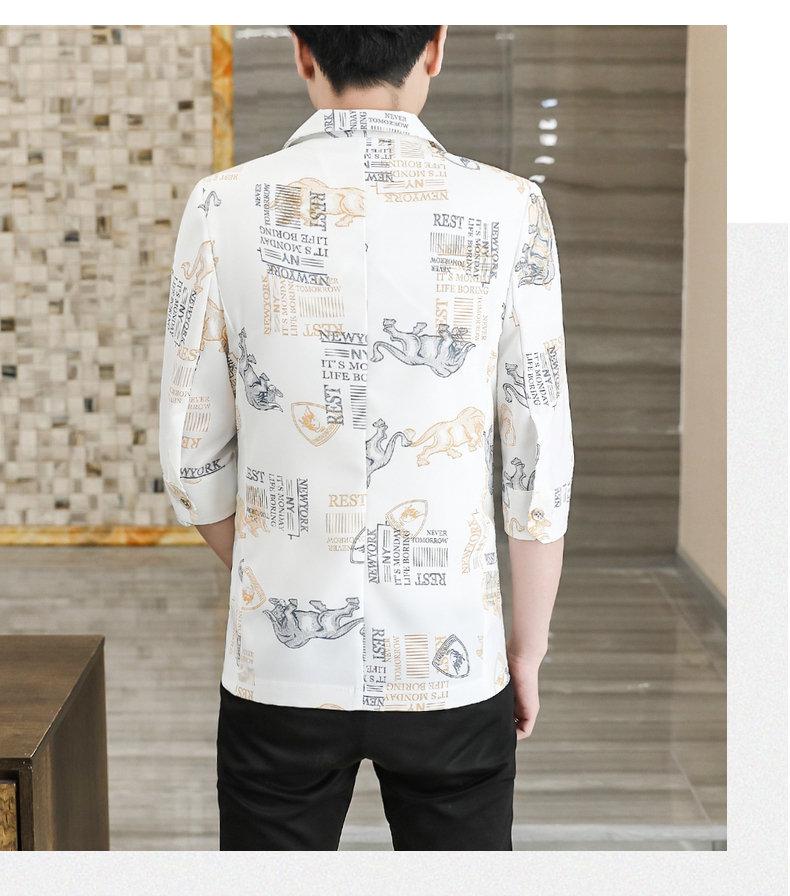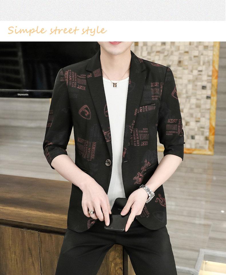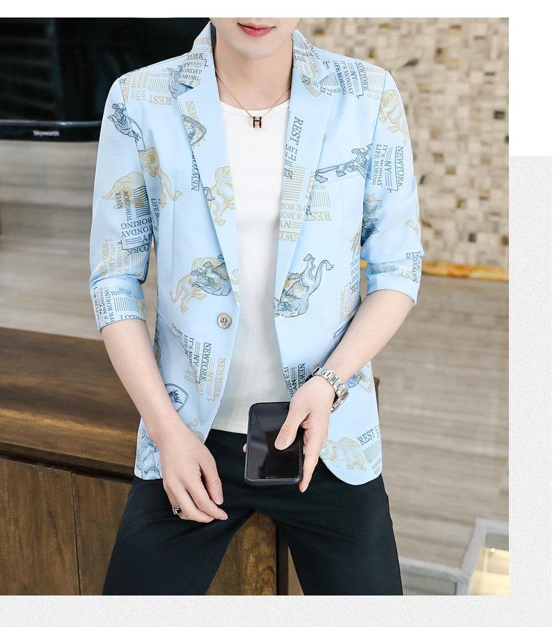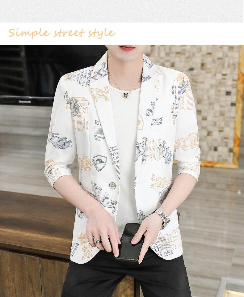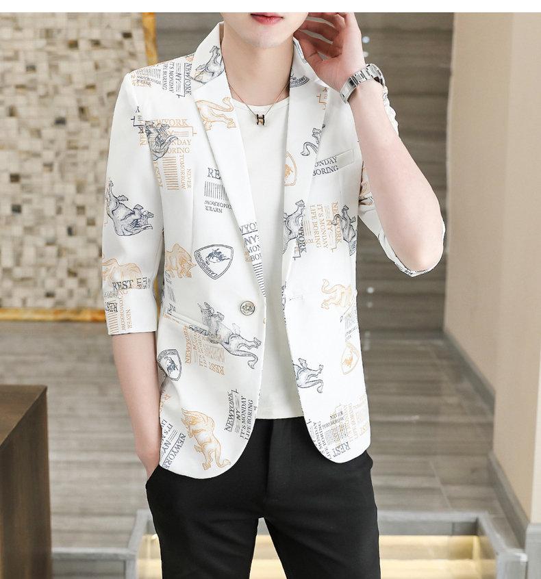 Traje pequeño de manga media para hombre, chaqueta estampada, estilo elegante, moda informal, verano 2023