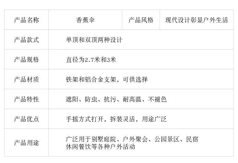 2.7 m Single Top Banana Iron Umbrella, 2.7 m Double Top Banana Iron Umbrella, 3.0 m Single Top Banana Iron Umb...