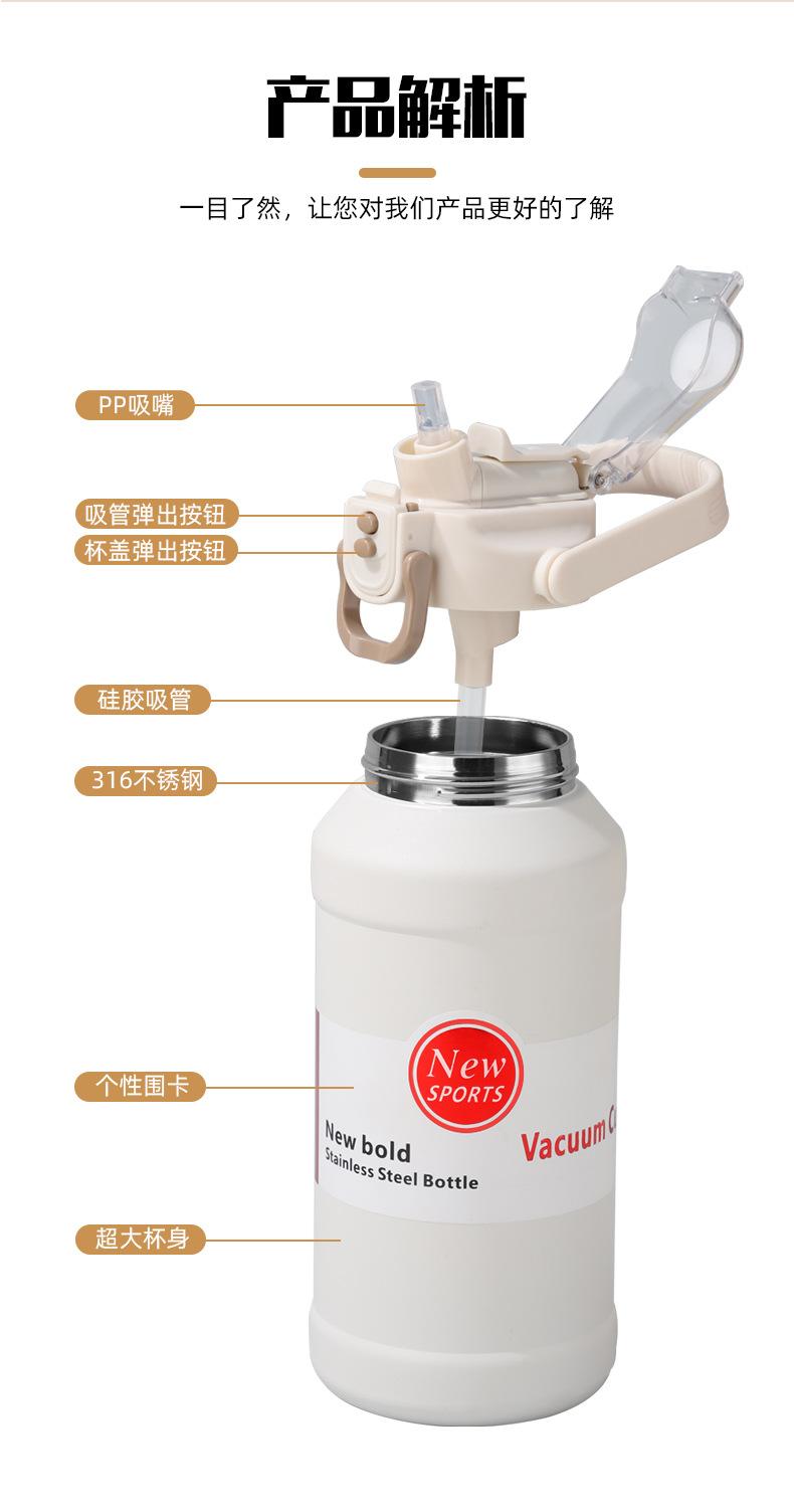 Engrosado en stock Tapa abatible Hervidor para exteriores Doble bebida Acero inoxidable Vaso de agua portátil 316 Termo de gran capacidad