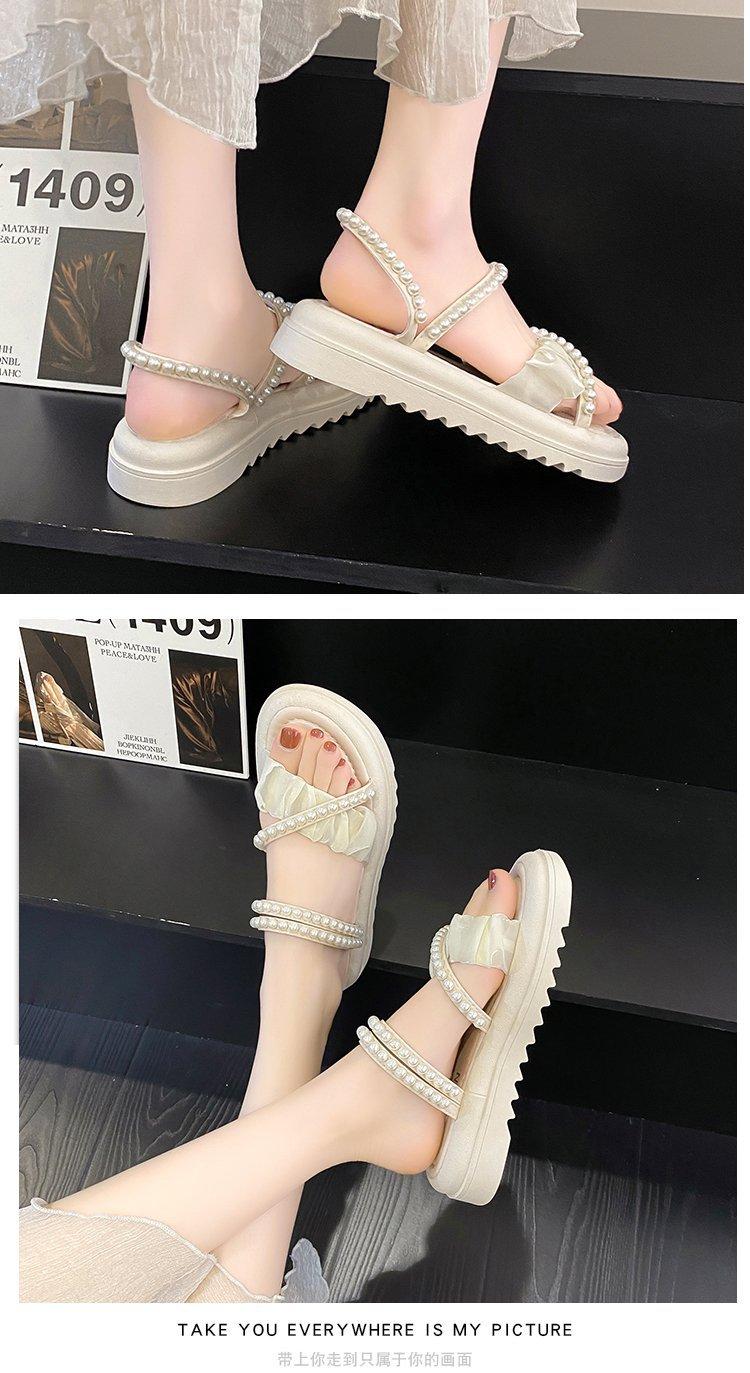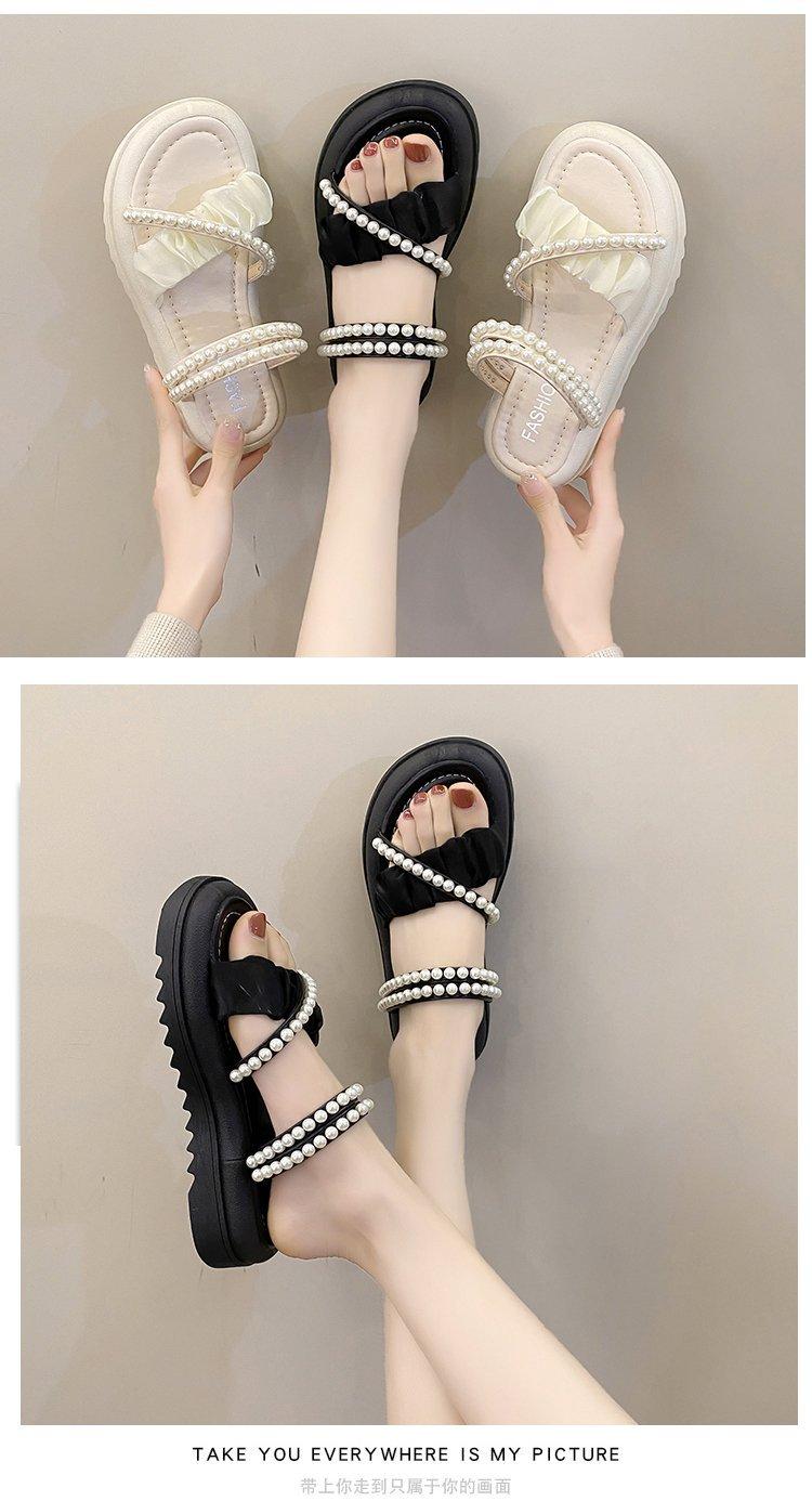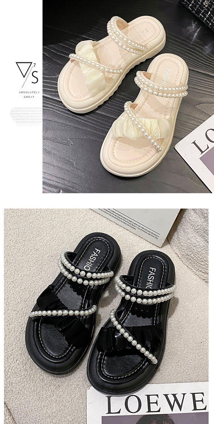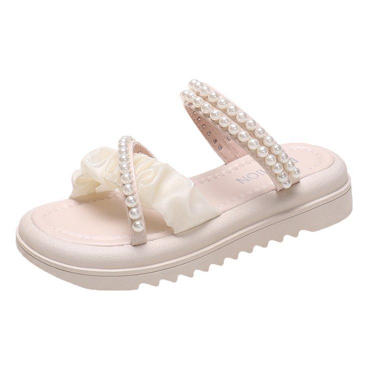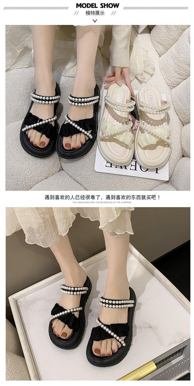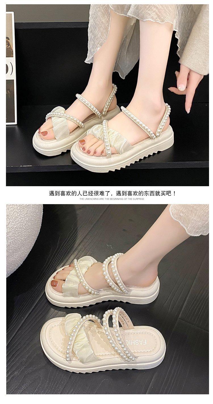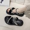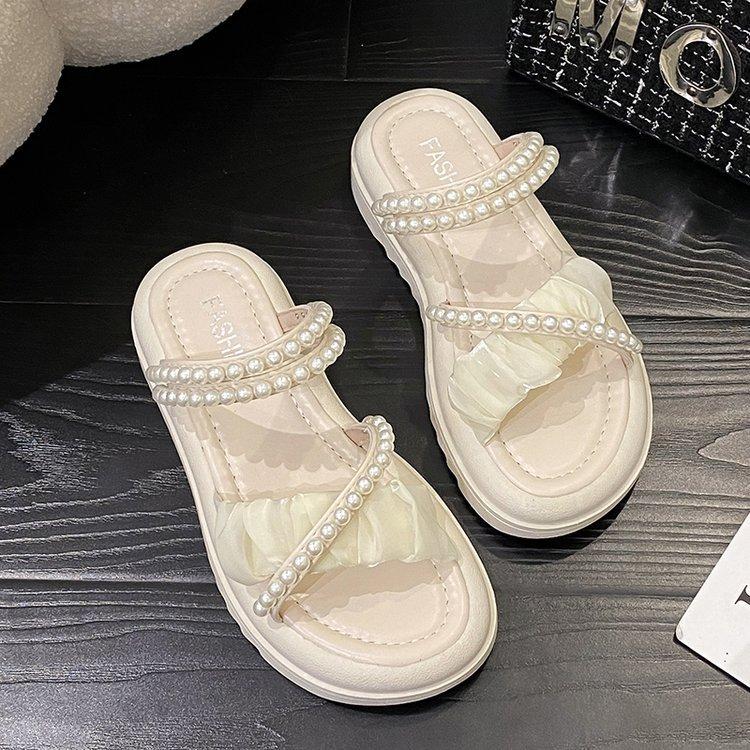 Sandalias de plataforma con dos perlas y suela gruesa para mujer, novedad de verano 2024, sandalias de suela suave a la moda que combinan con todo, zapatos de mujer
