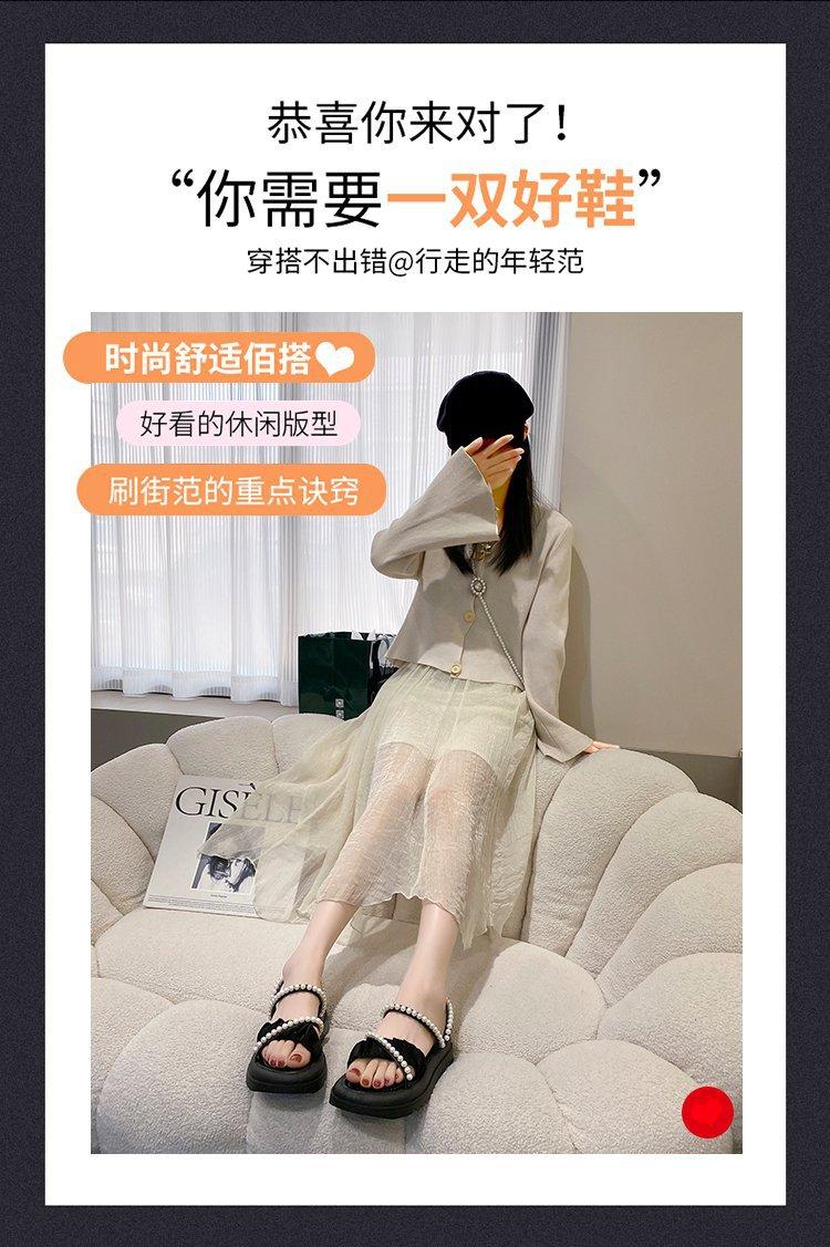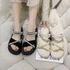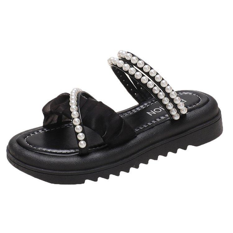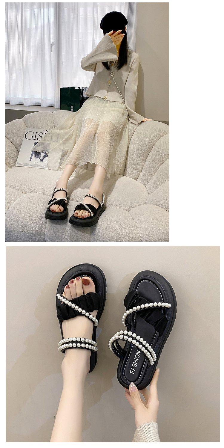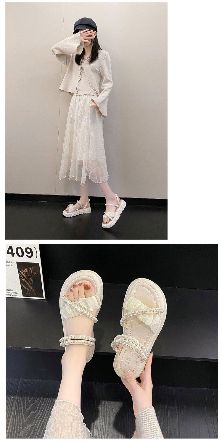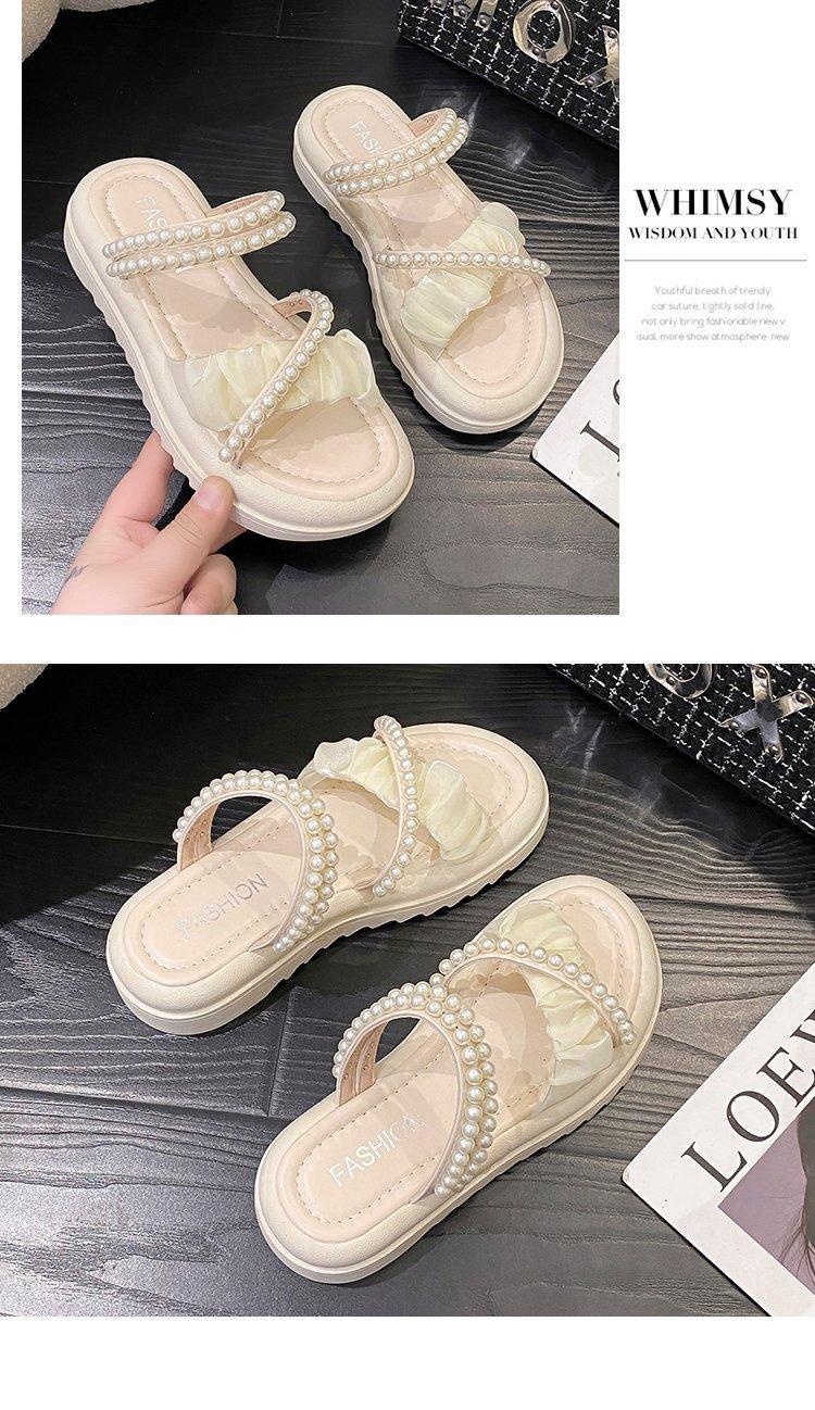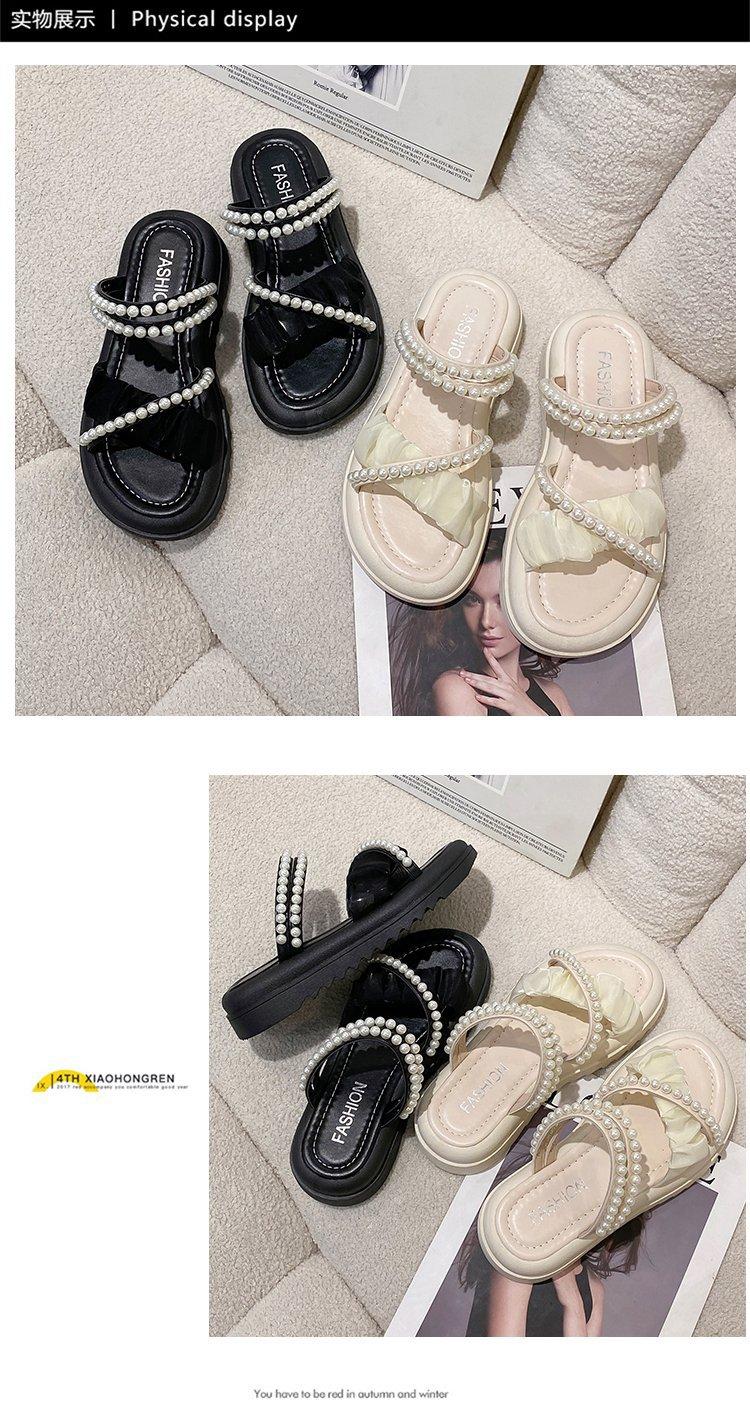 Sandalias de plataforma con dos perlas y suela gruesa para mujer, novedad de verano 2024, sandalias de suela suave a la moda que combinan con todo, zapatos de mujer