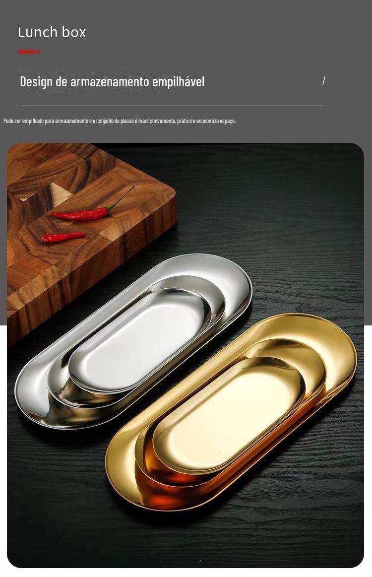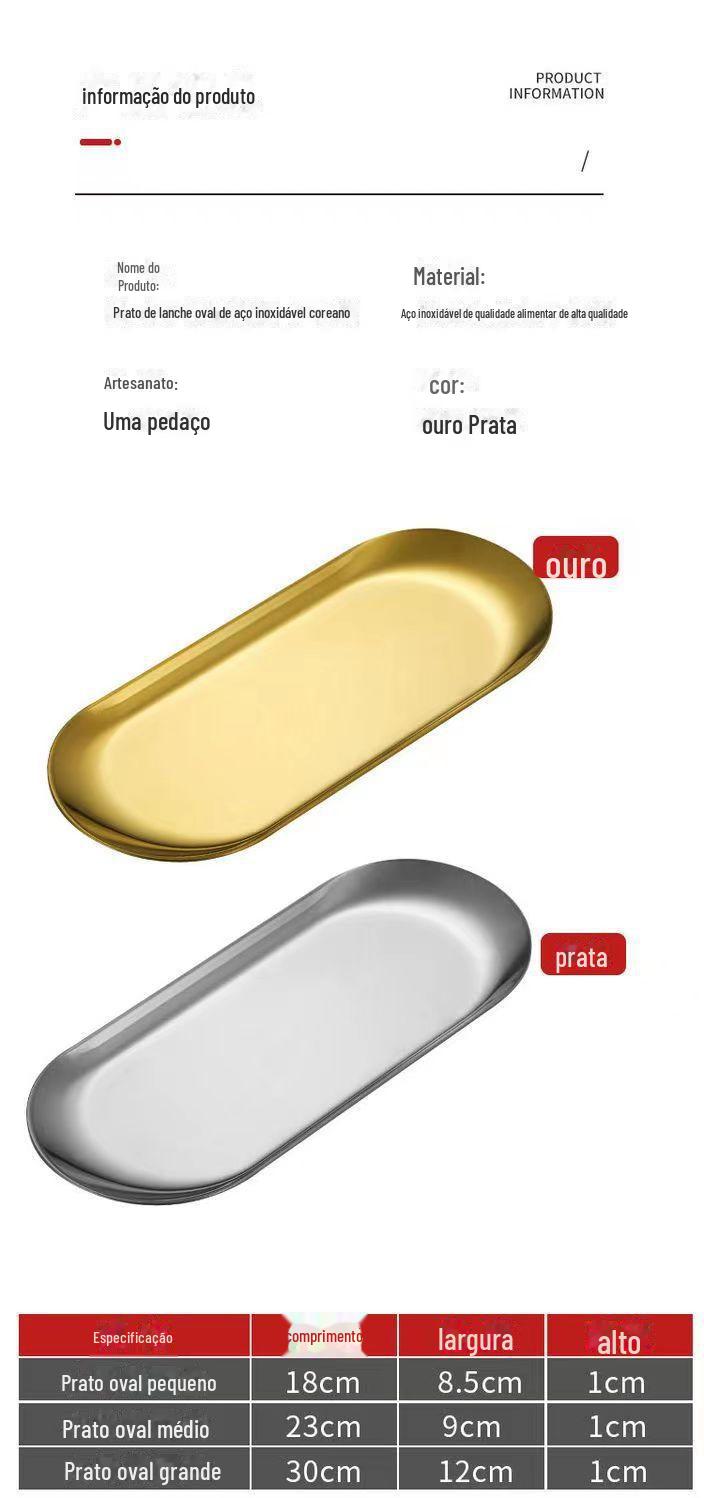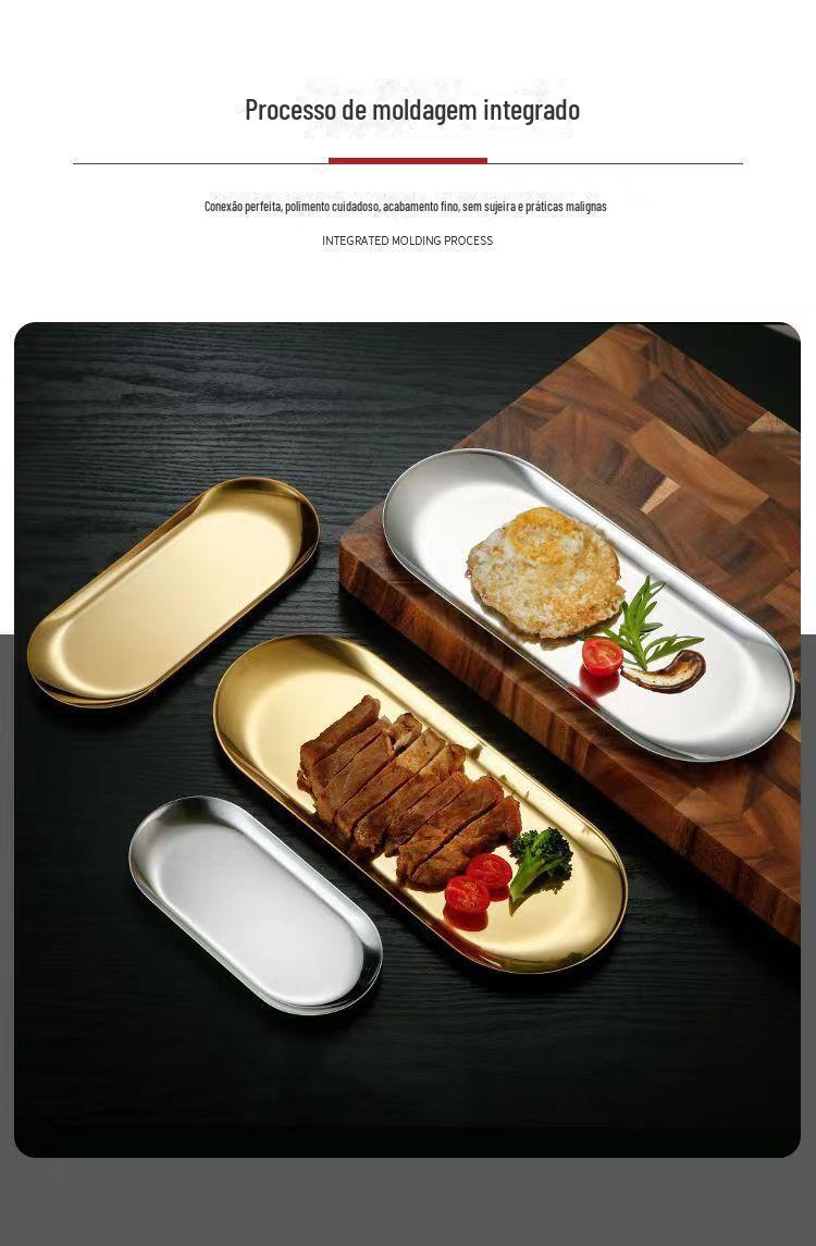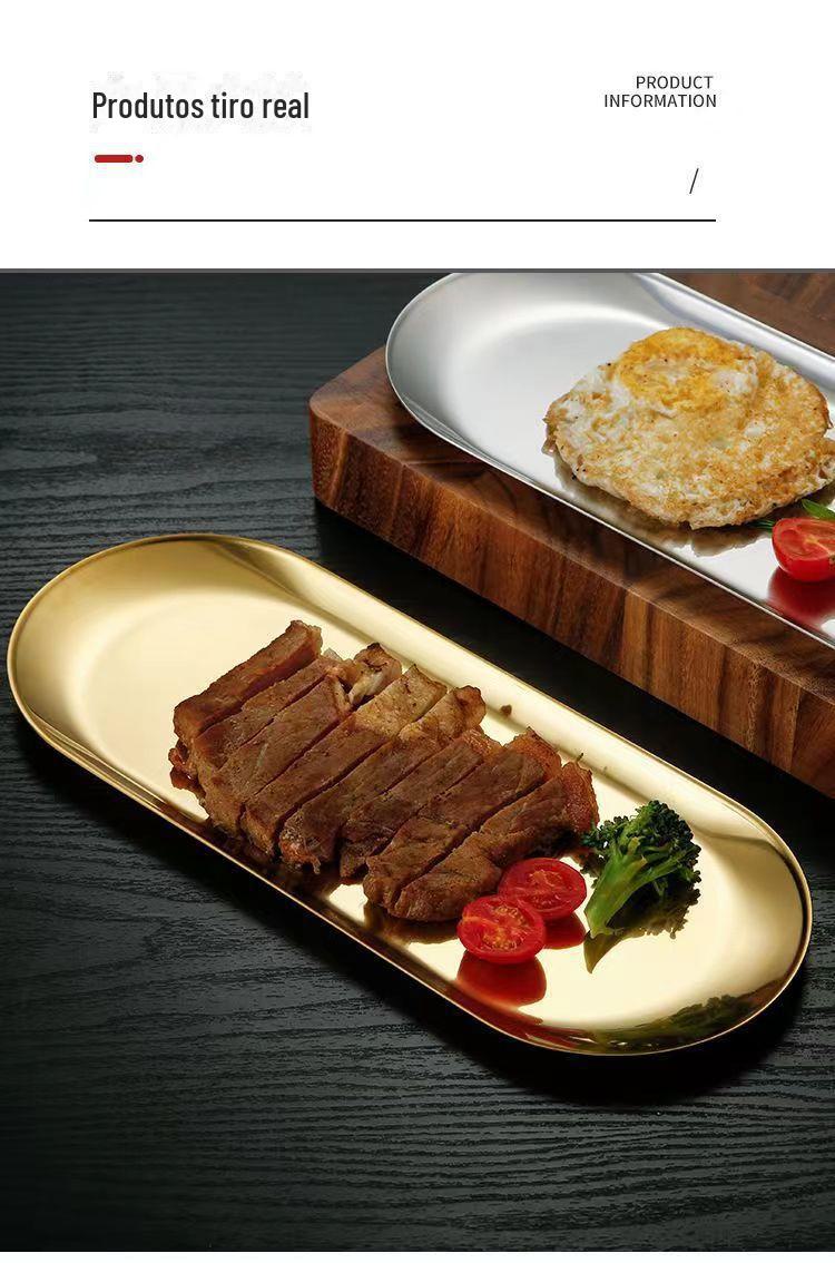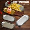 Estilo coreano de aço inoxidável placa oval hotel suprimentos sobremesa lanche prato dourado quente panela acompanhamentos criativo bandeja toalha prato