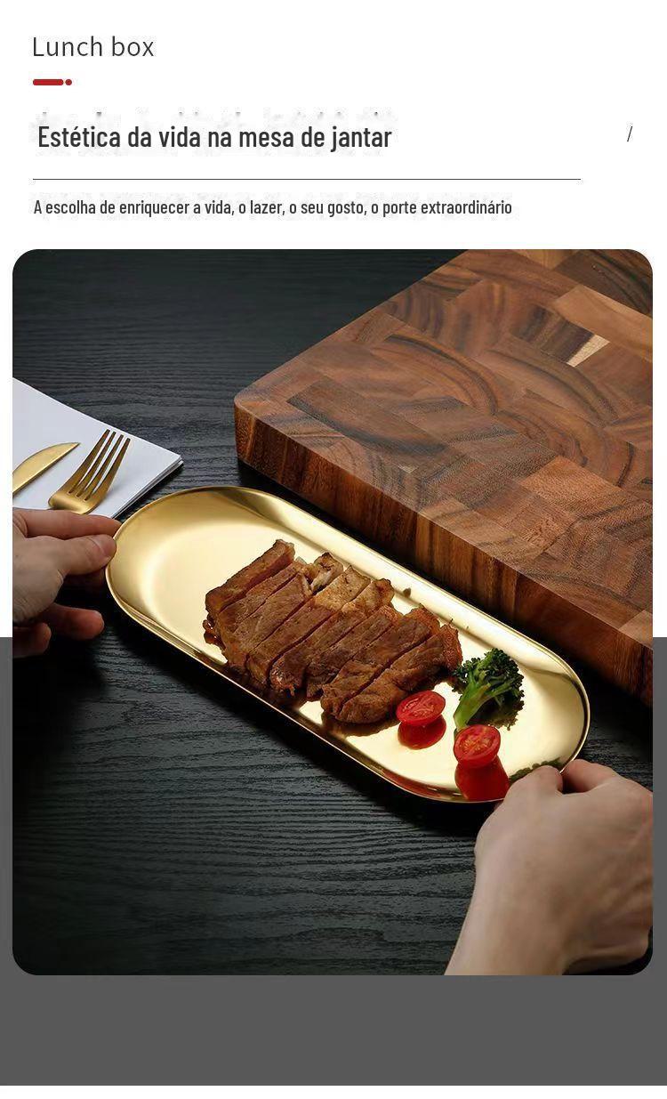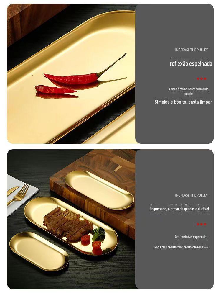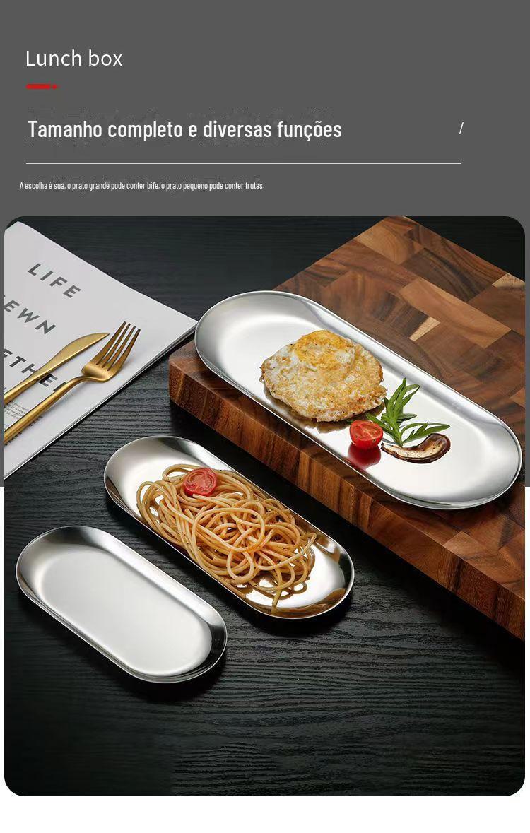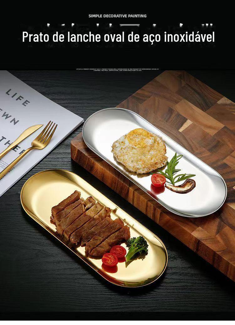 Estilo coreano de aço inoxidável placa oval hotel suprimentos sobremesa lanche prato dourado quente panela acompanhamentos criativo bandeja toalha prato