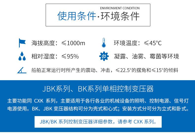 Los transformadores de control monofásicos de las series JBK y BK comparten las mismas funciones principales que los de la serie CXK y son ideales para iluminación, suministro de energía para control y alimentación de luces de señalización de equipos mecánicos en diversas industrias. Los transformadores BK JBK se dividen en tipo carcasa y tipo núcleo según su estructura, y en tipo vertical y tipo horizontal según su método de instalación. Nuestra empresa produce una gama completa de transformadores pequeños para suministro de energía, iluminación y control, con una apariencia elegante y generosa, tamaño compacto, peso ligero y un funcionamiento fiable. Gracias al uso de una tecnología especial de impregnación, ofrecen buenas propiedades antivibración, antimoho y antiincrustaciones. Se utilizan ampliamente en diversos campos, tanto civiles como industriales, y han tenido una excelente aceptación entre los clientes. Se fabrican según la norma JB/T5555-2013, y la caja se puede fabricar según los requisitos del usuario, lo que permite la instalación de medidores de voltaje y corriente, luces indicadoras de potencia, interruptores automáticos en caja moldeada, etc.