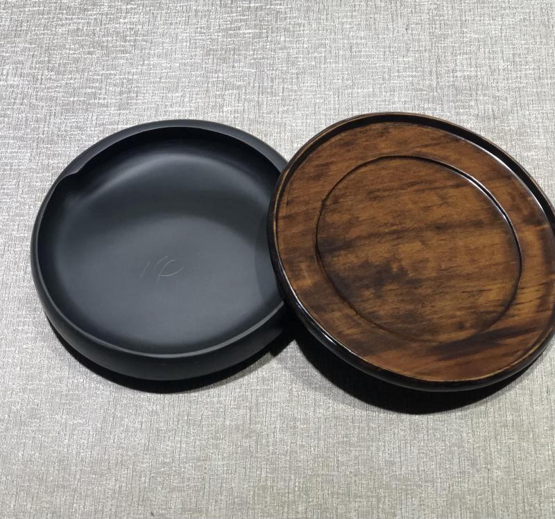La piedra de este tintero se toma de She Inkstone [Tintero Longwei]. Es una piedra con patrón de hueva de pescado negro. Tiene textura pura y sin defectos. No está disponible con una caja de madera mixta por el momento.