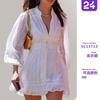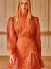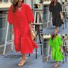 2025 Otoño Transfronterizo Nuevo Ropa Europea y Americana Vestido Cuello en V Manga Larga Dulce Acordonado Falda con Volantes