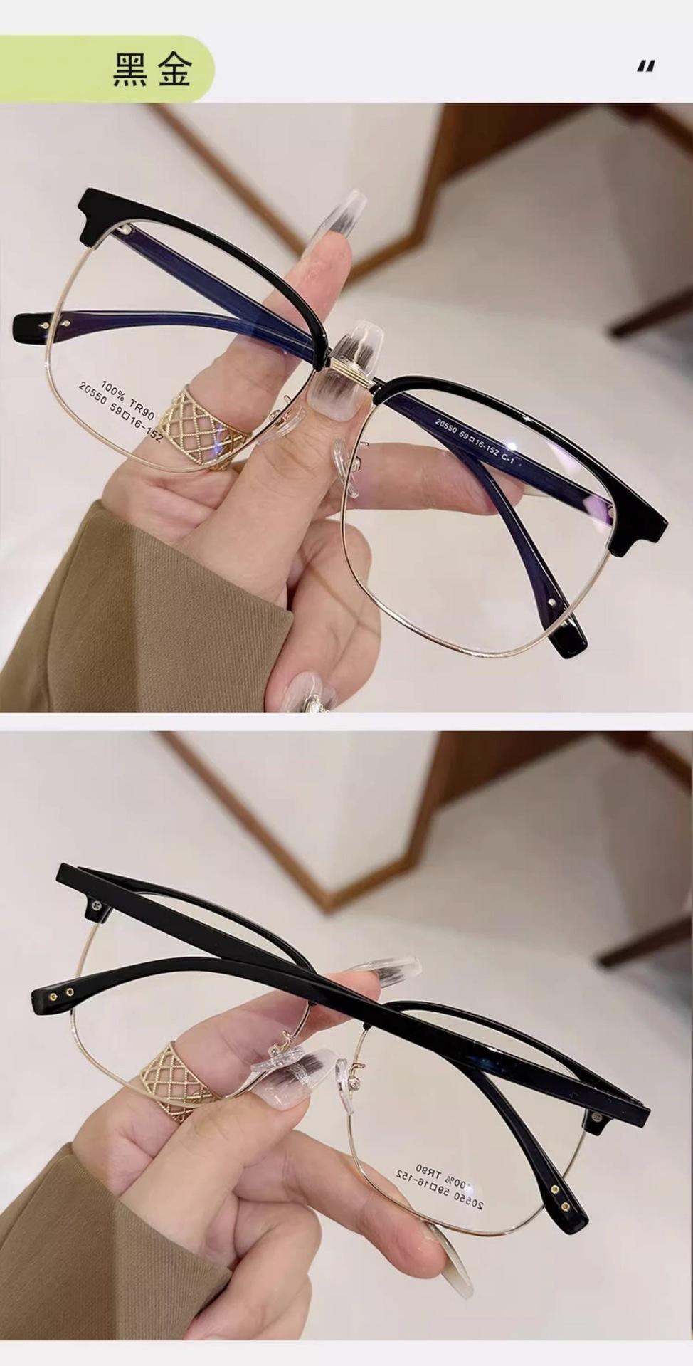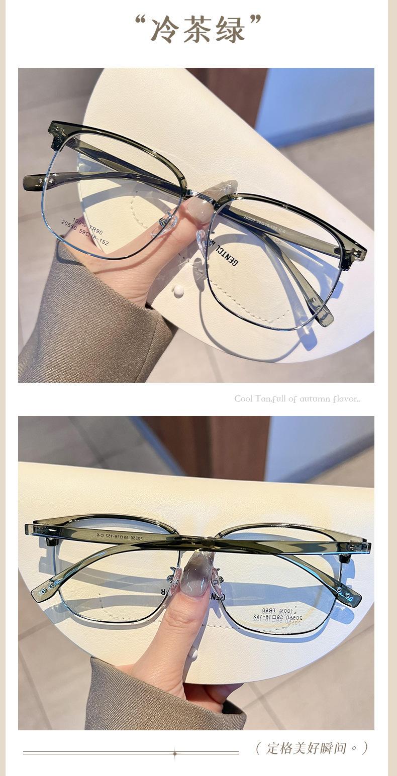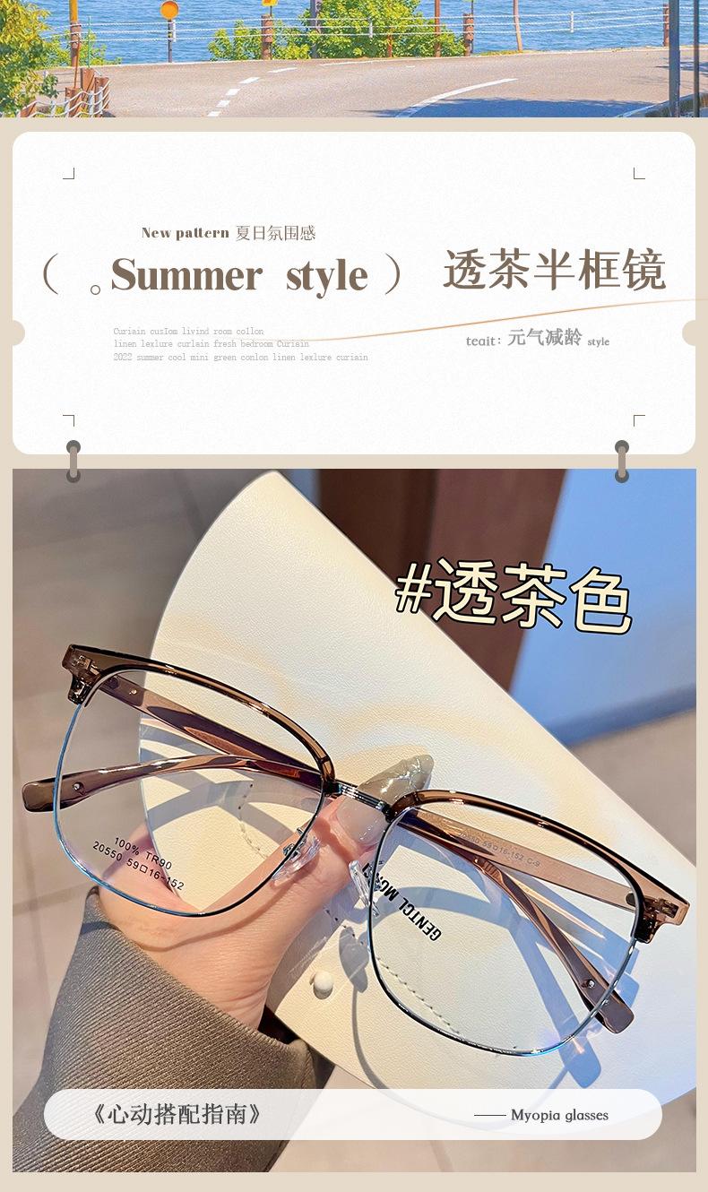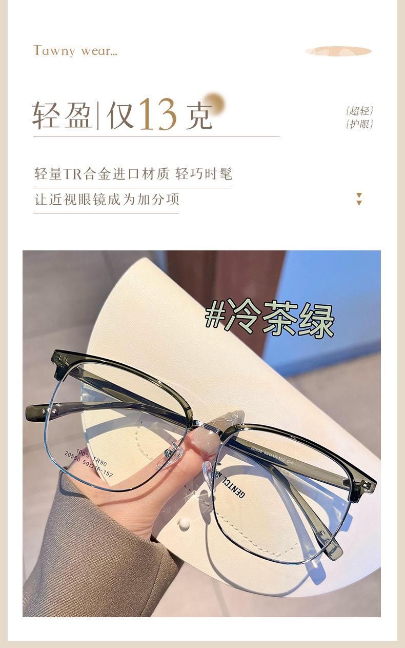 Gafas de medio marco TR90 ultraligeras para cejas, montura para hombres y mujeres, caja de moda, lentes planas que combinan con todo, se pueden equipar con estudiantes con grado de miopía