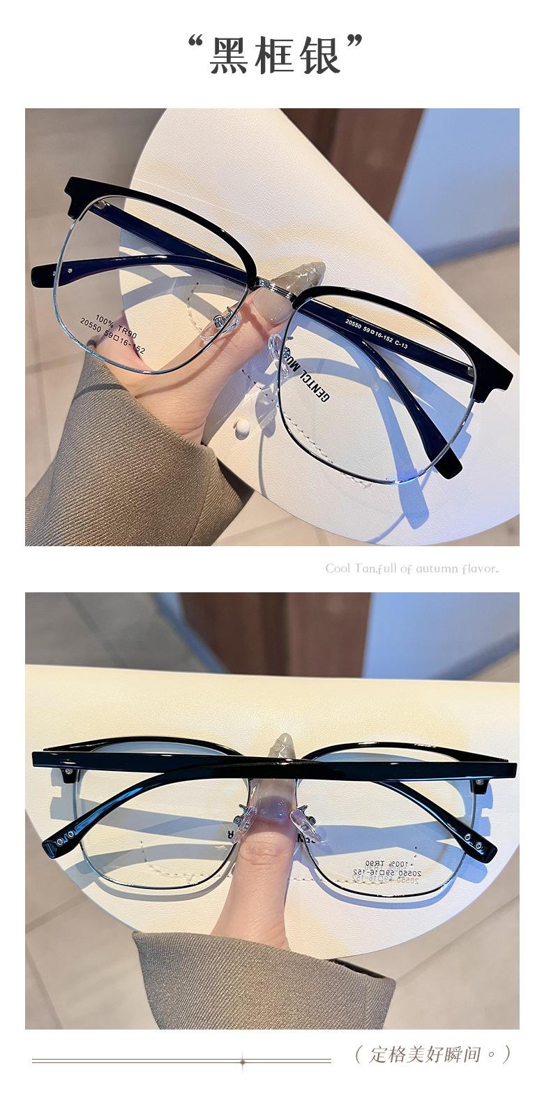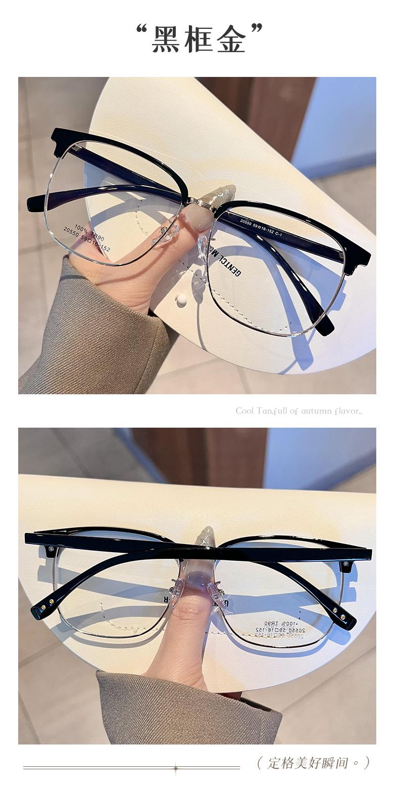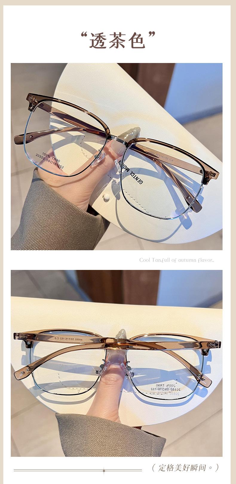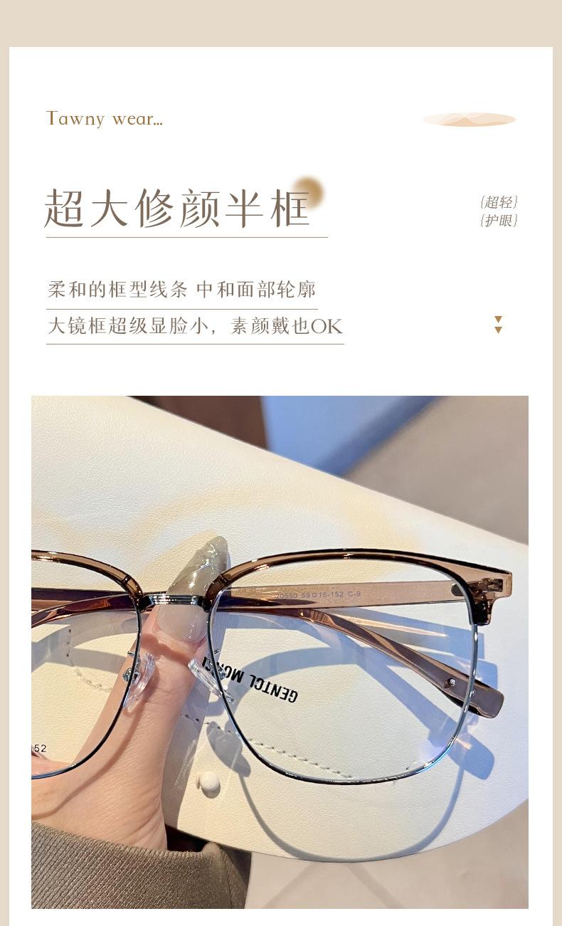 Gafas de medio marco TR90 ultraligeras para cejas, montura para hombres y mujeres, caja de moda, lentes planas que combinan con todo, se pueden equipar con estudiantes con grado de miopía