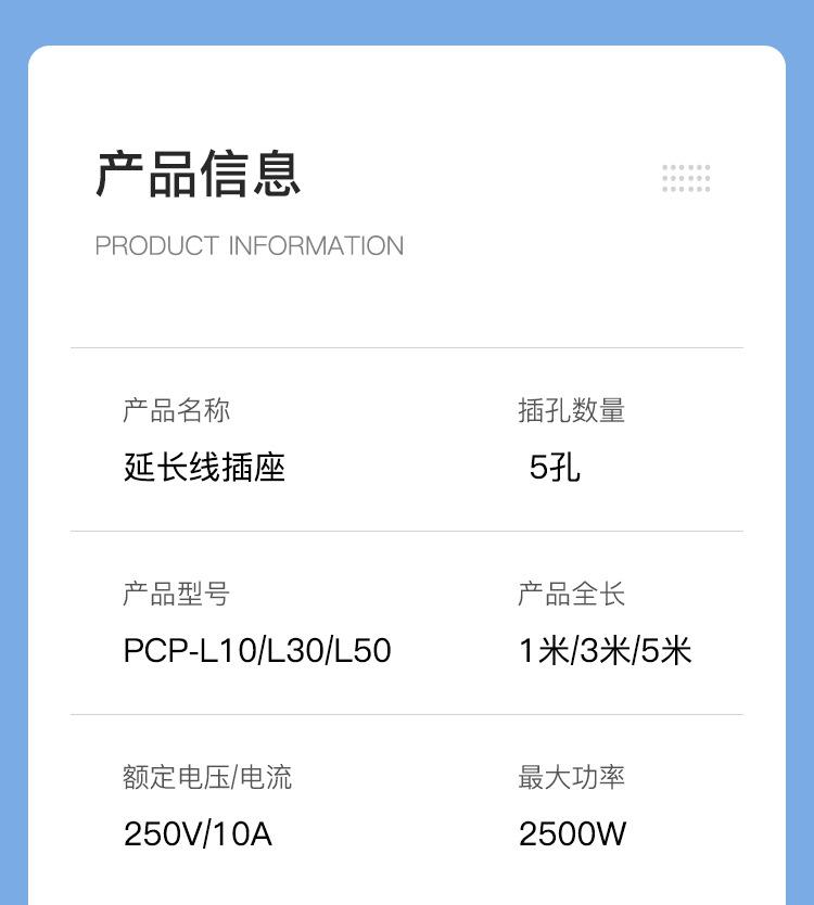 Línea de extensión Qixin PCP-L30 de 5 orificios con una longitud total de 3 metros
