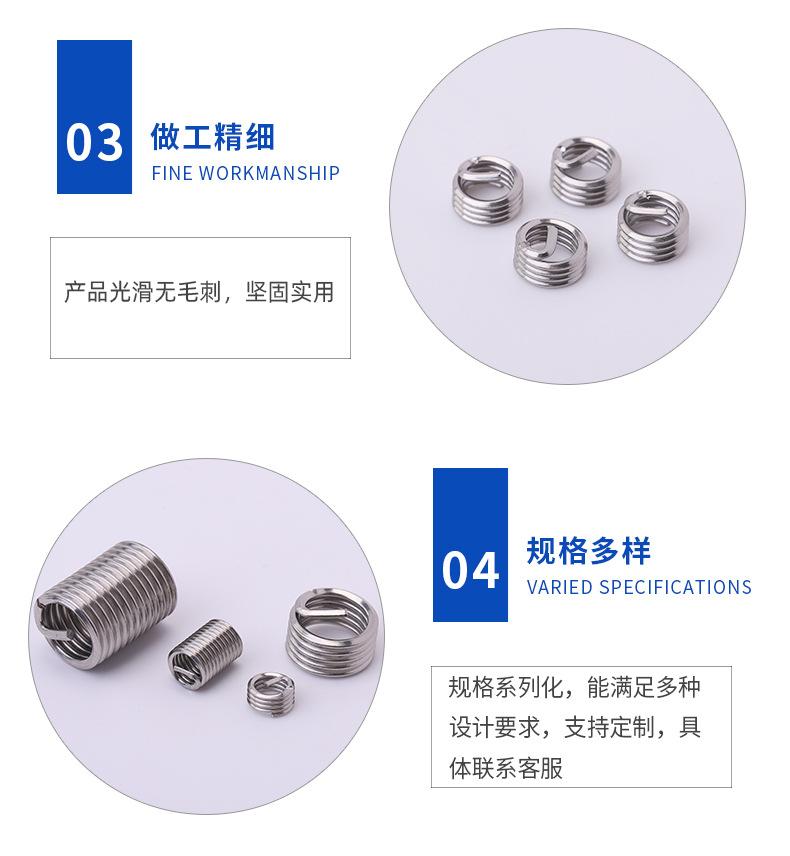 Producción de fábrica 304 inserción de tornillo de alambre de acero M2M3M6M8M30 manguito de resorte de acero inoxidable piezas estándar vaina de rosca autorroscante