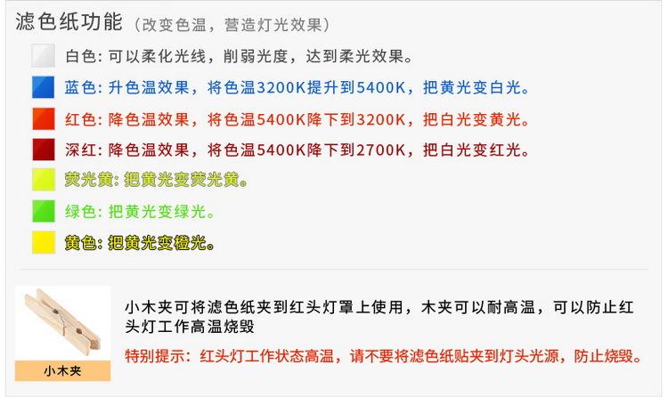 Papel de filtro de color para lámpara de cabeza roja, clip de madera, fotografía escénica, cine y televisión, papel de luz suave, papel de temperatura de color de luz, papel de filtro Leiden