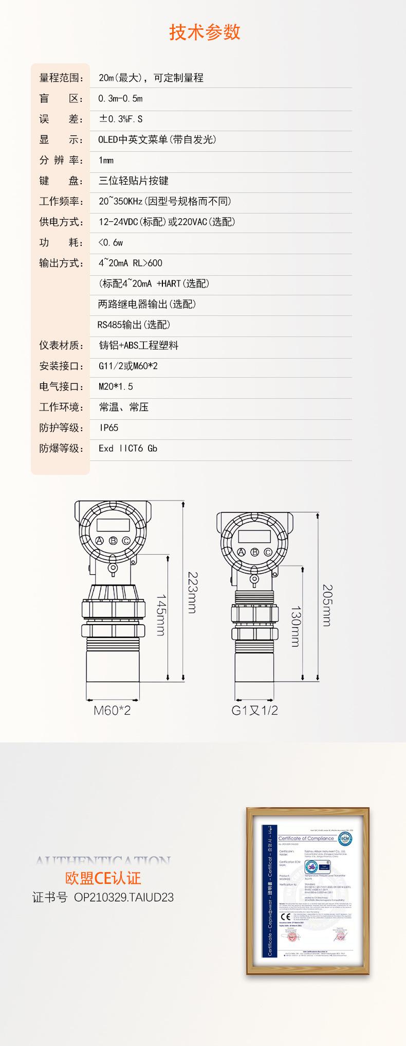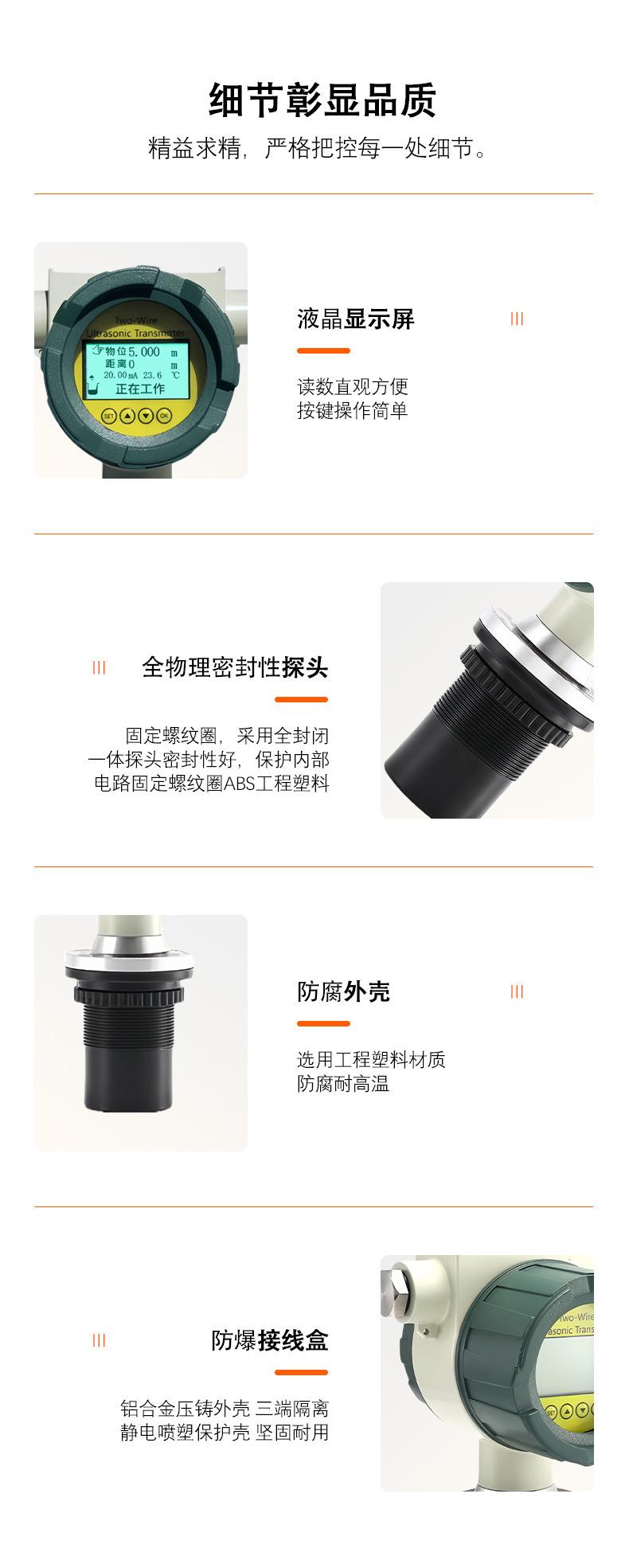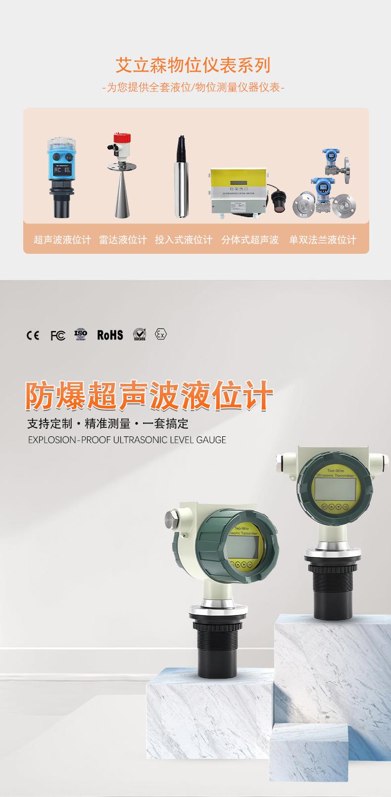 Medidor de nivel ultrasónico a prueba de explosiones con sensor dividido integrado, medidor de nivel de agua anticorrosión, interruptor de nivel de material de 4-20 mA