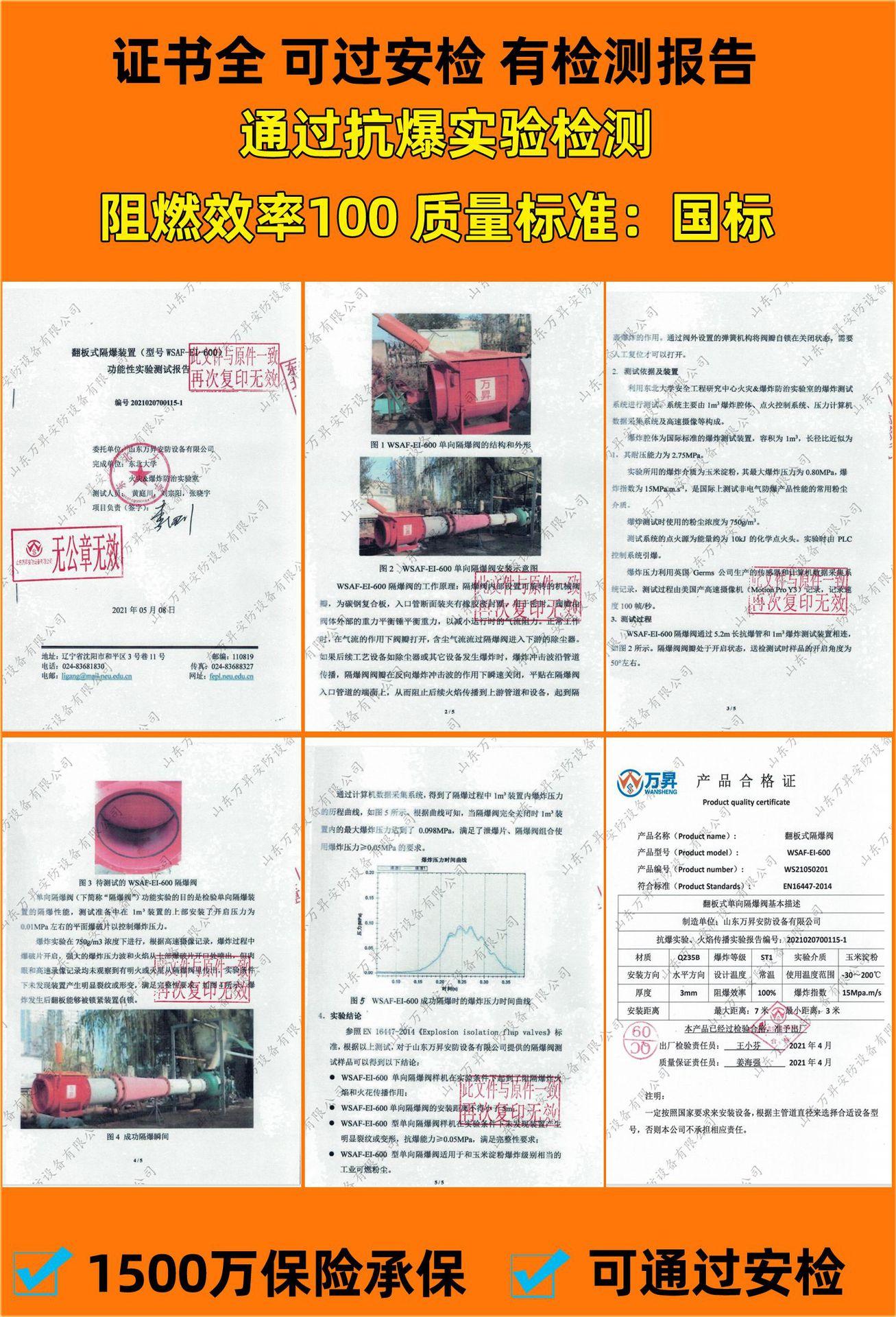 La certificación de la Universidad del Noreste puede pasar la inspección de seguridad de la válvula a prueba de explosiones de la tubería de polvo, la válvula a prueba de explosiones unidireccional de la tubería de polvo.